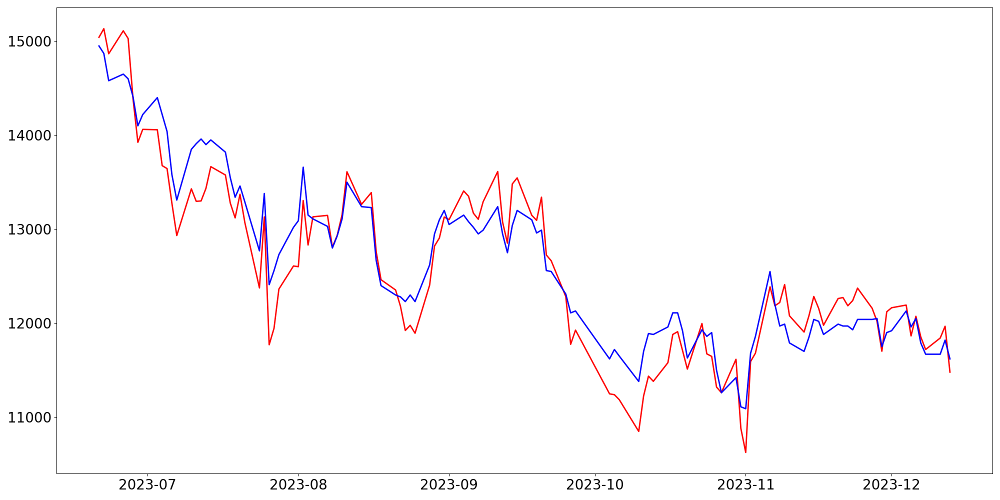 [ - : 실제값(종가) / - : 예측값(종가) ]