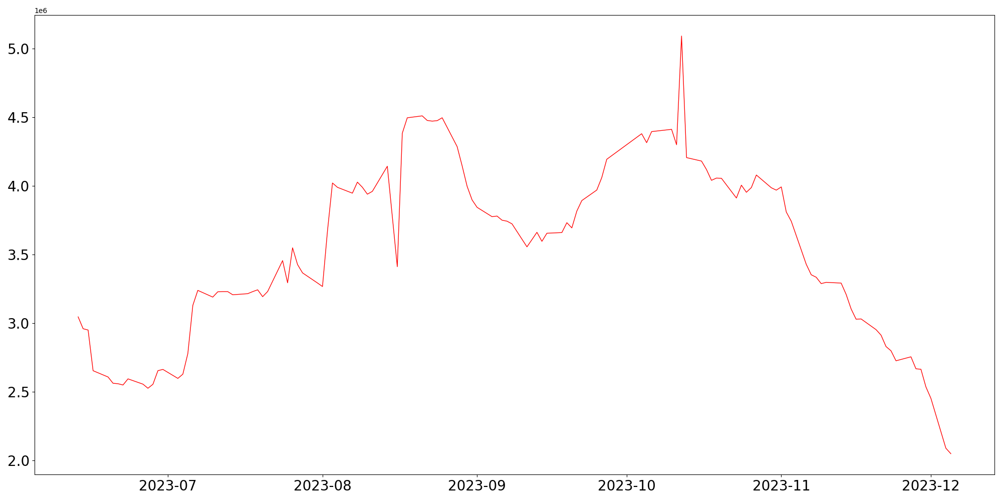 | 20일 | 1,316,581 | -1,512,596 | 197,993 |