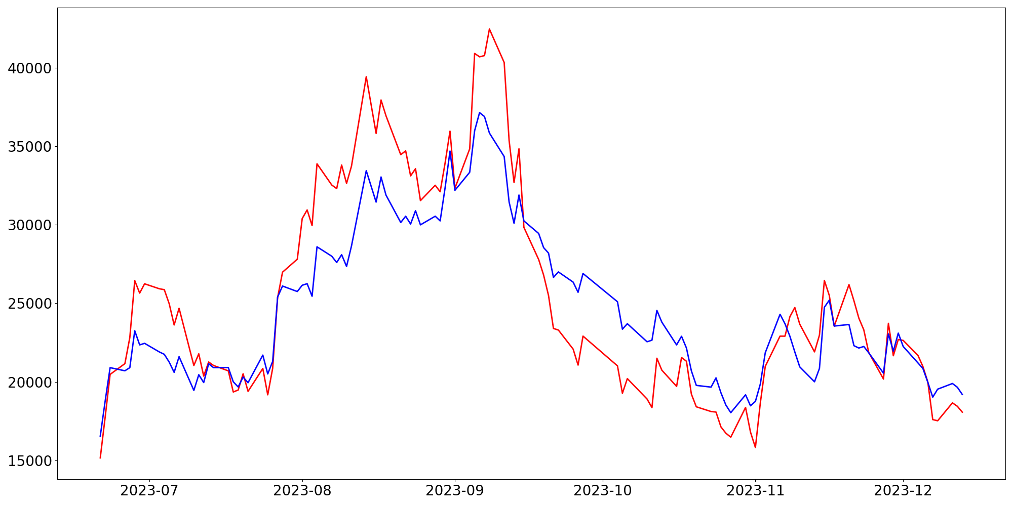[ - : 실제값(종가) / - : 예측값(종가) ]