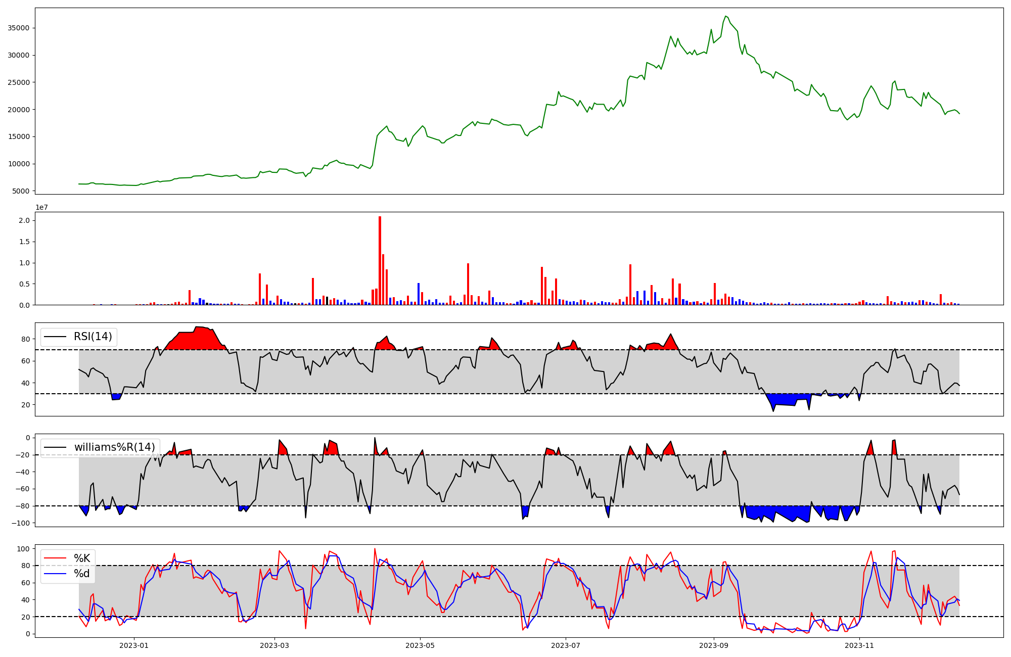 | RSI | Williams %R | stochastic(%K) | |