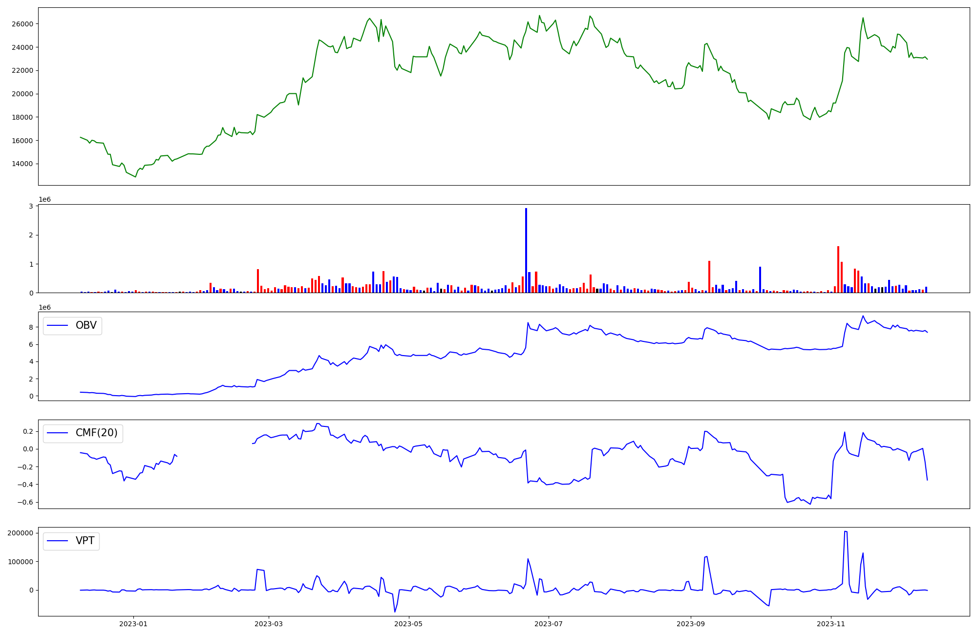 | OBV | CMF | VPT | |