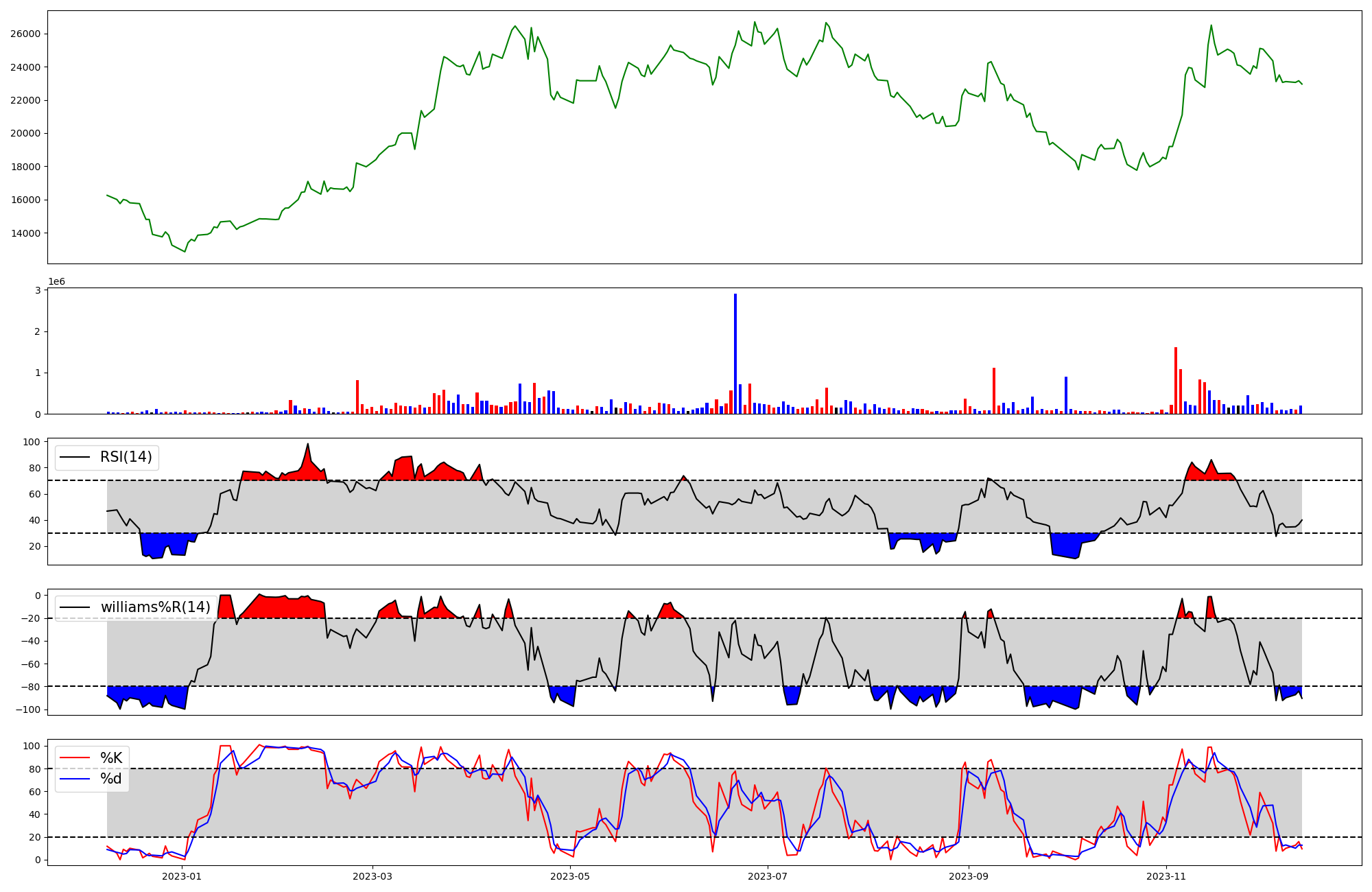 | RSI | Williams %R | stochastic(%K) | |