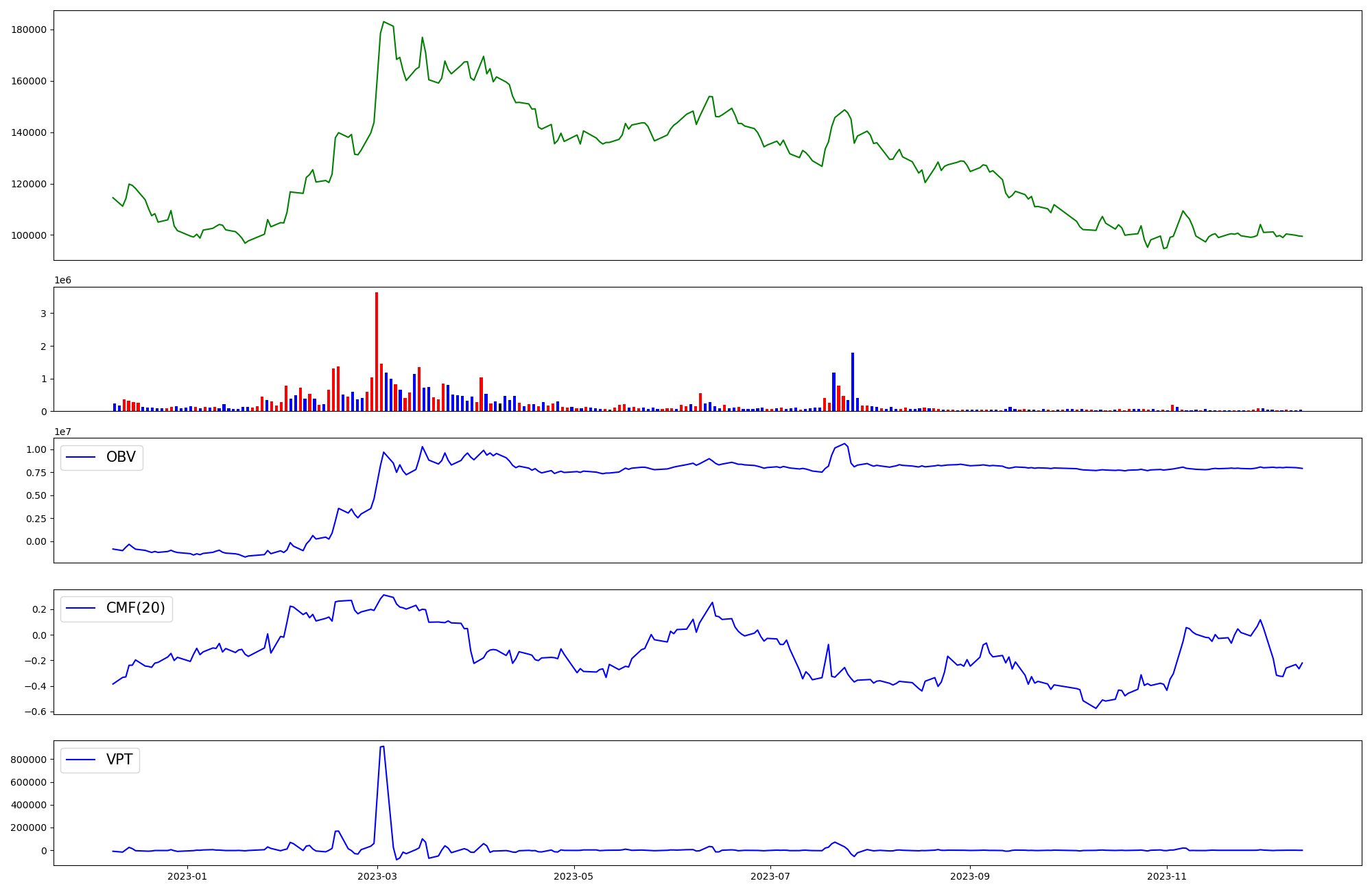 | OBV | CMF | VPT | |