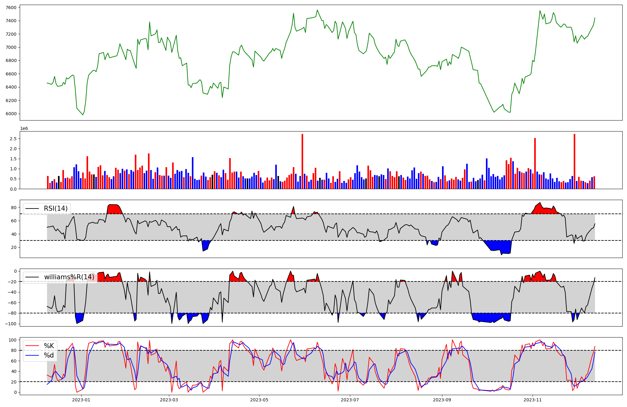 □ 중기 : 현재 종가가 중기(60일) 이동평균값(6,868원)을 상회 하여 중기적 추세 상승 중