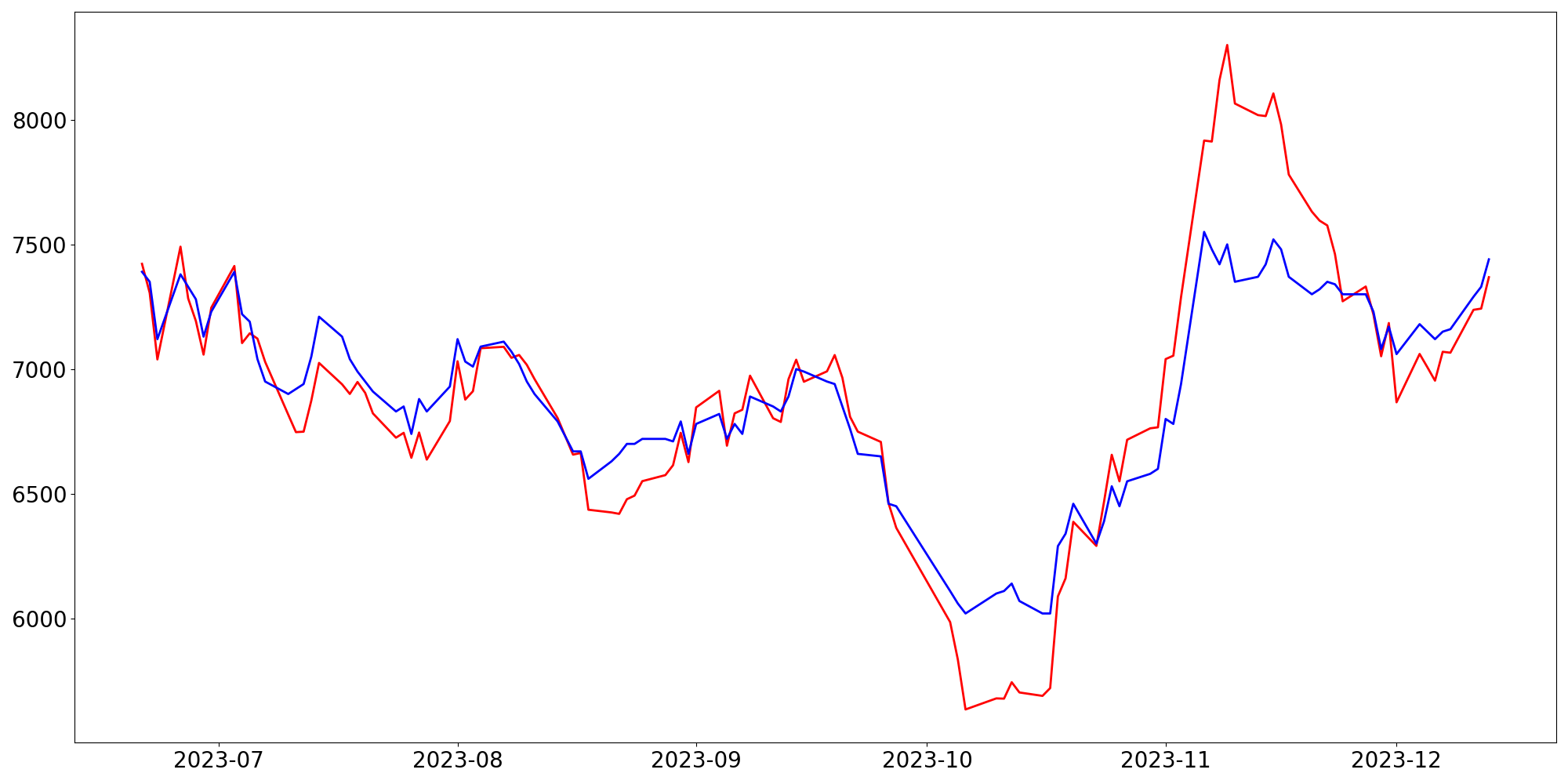 [ - : 실제값(종가) / - : 예측값(종가) ]