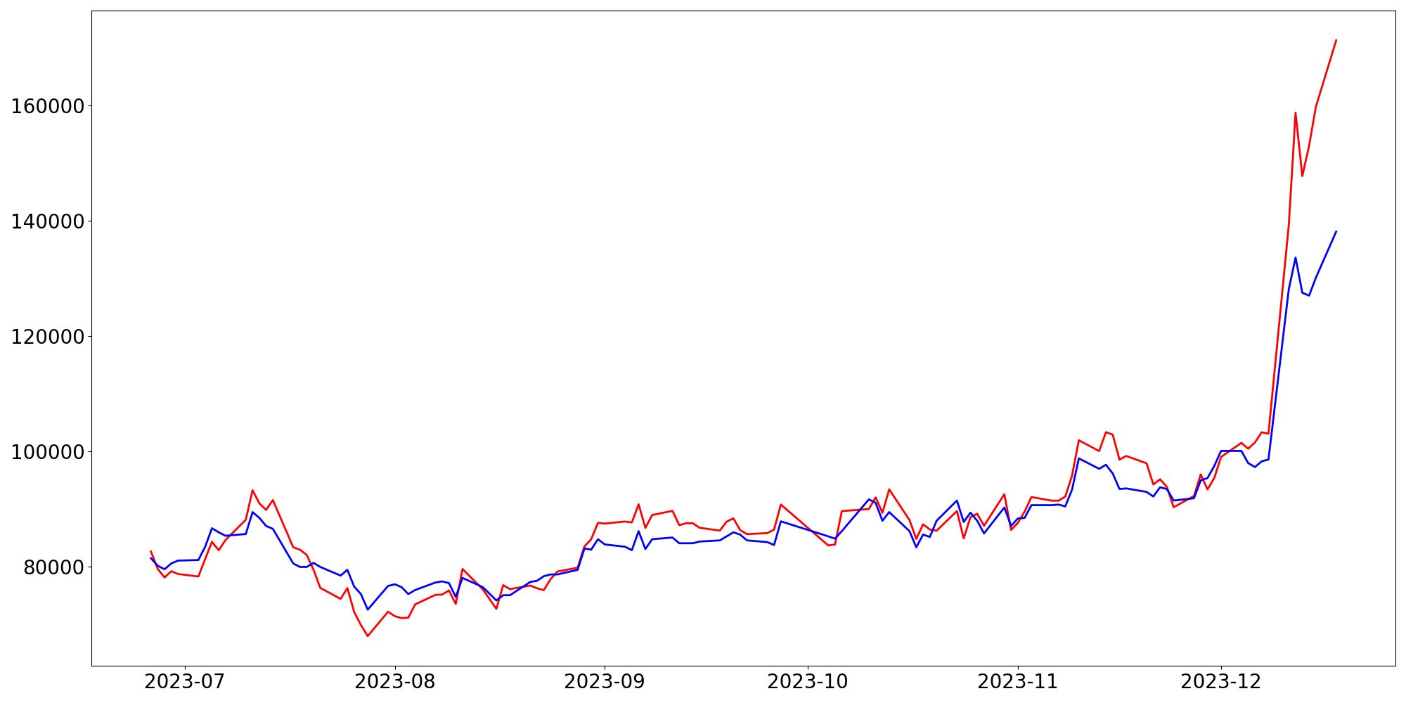 [ - : 실제값(종가) / - : 예측값(종가) ]