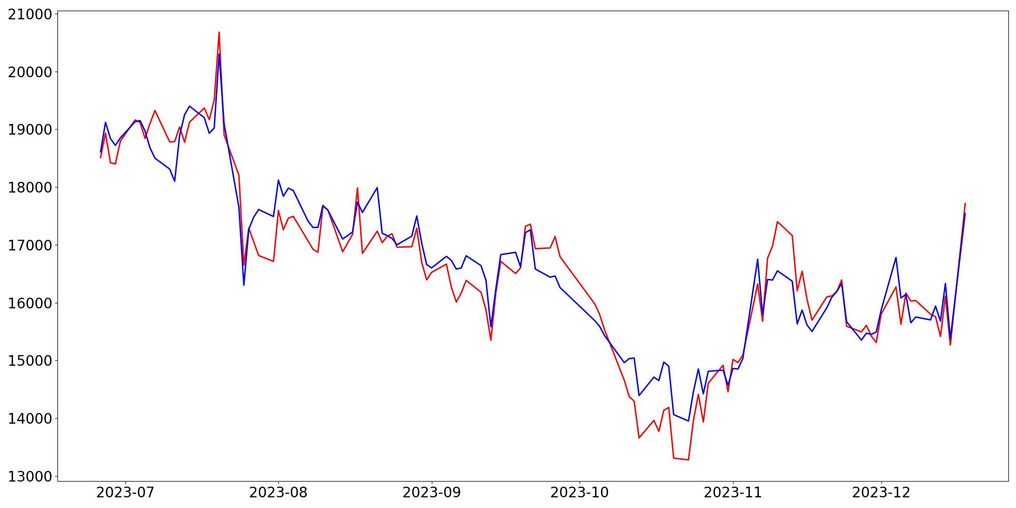 [ - : 실제값(종가) / - : 예측값(종가) ]