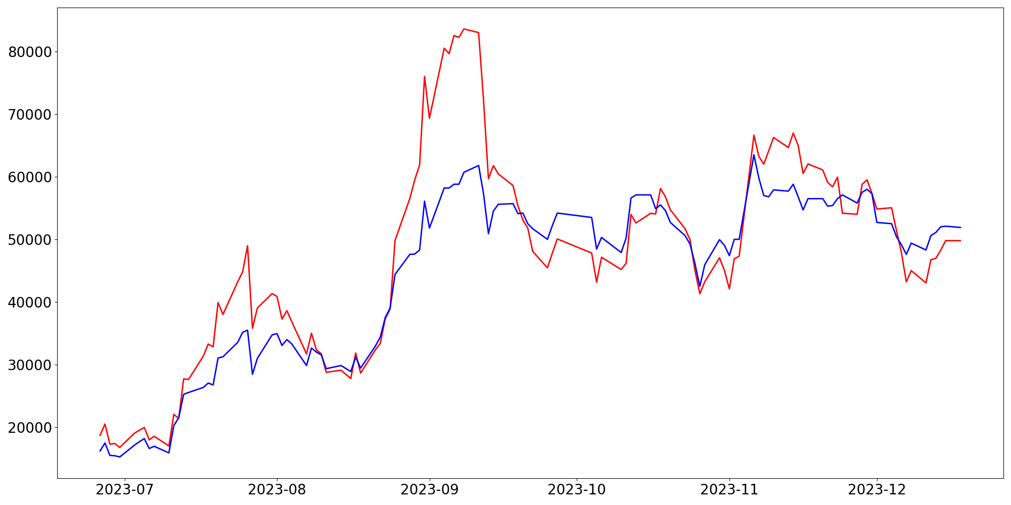 [ - : 실제값(종가) / - : 예측값(종가) ]