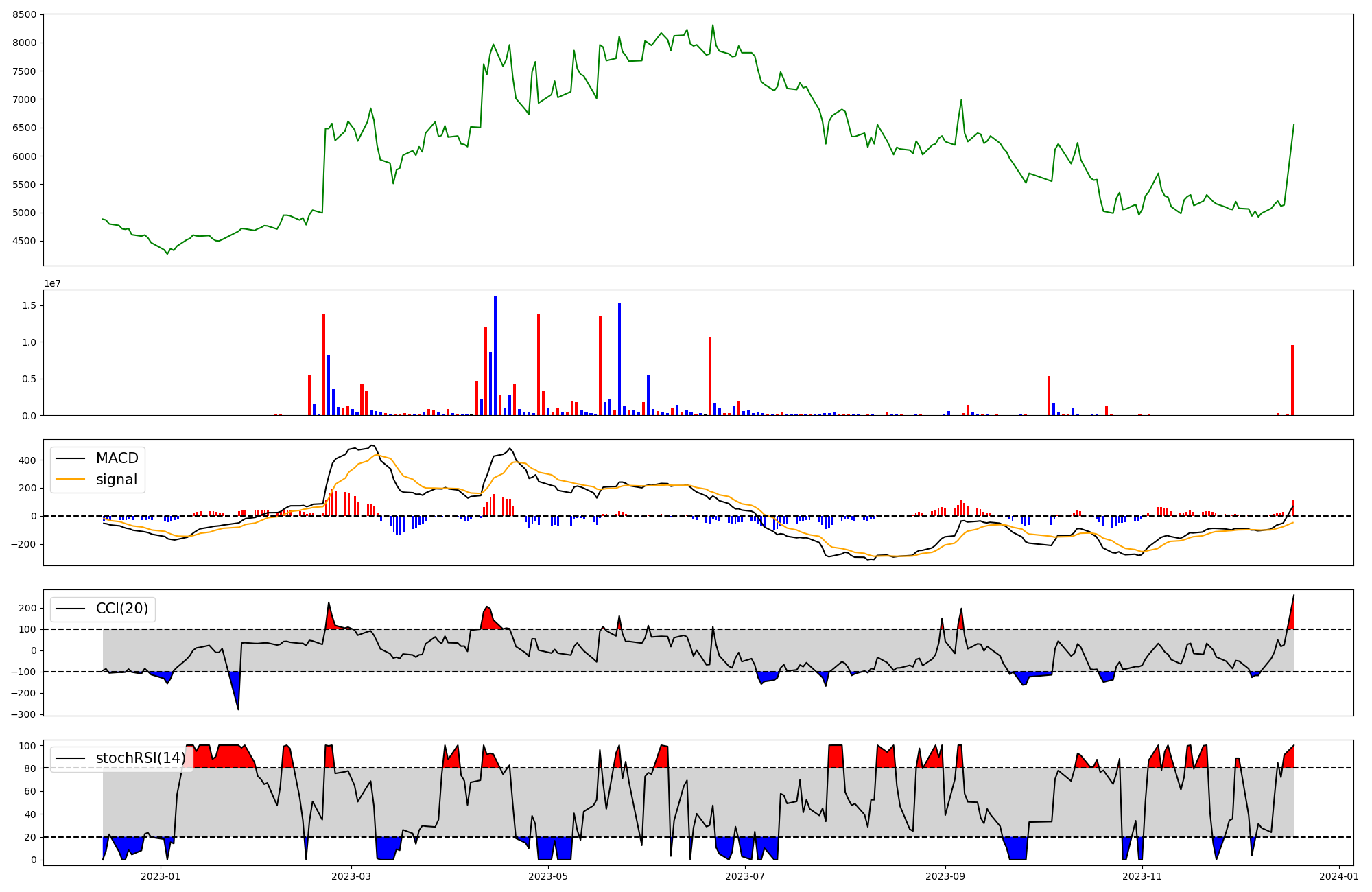 □ 오늘의 종가 : 6,550 (+1,420, +27.68%)