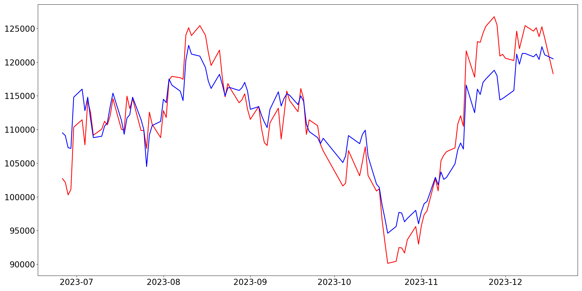 [ - : 실제값(종가) / - : 예측값(종가) ]