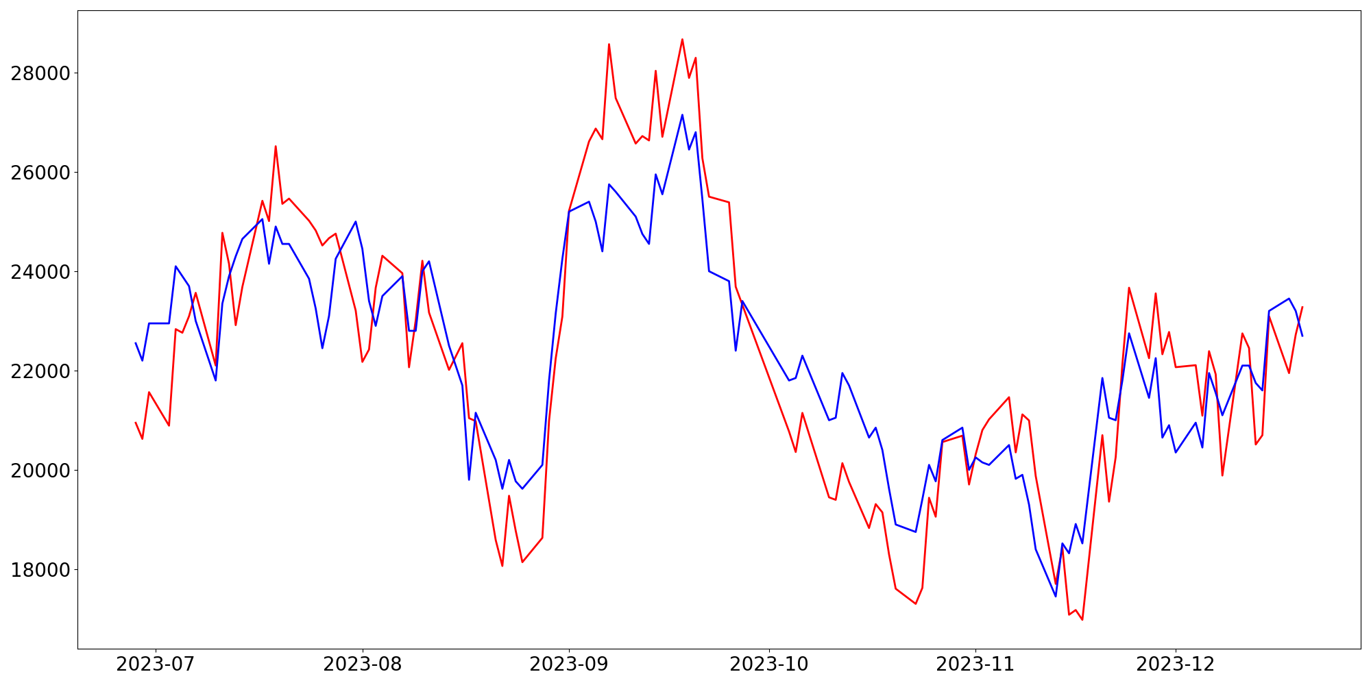 [ - : 실제값(종가) / - : 예측값(종가) ]