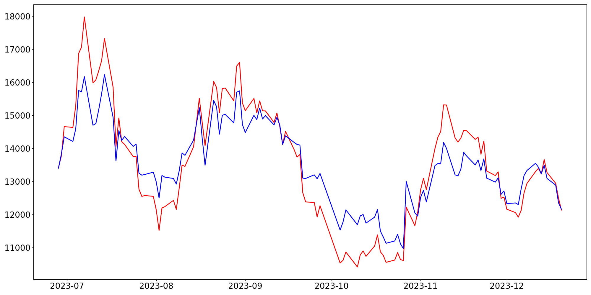 [ - : 실제값(종가) / - : 예측값(종가) ]