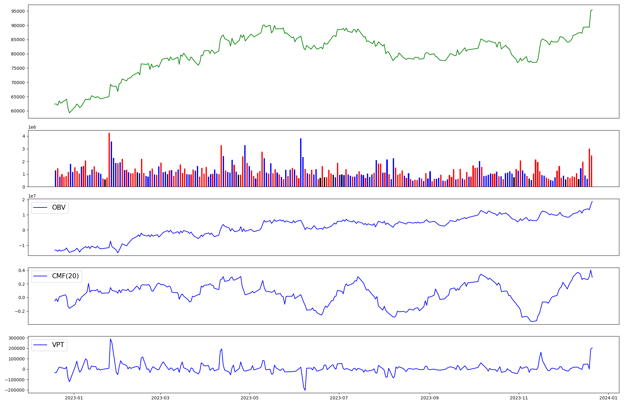 | OBV | CMF | VPT | |