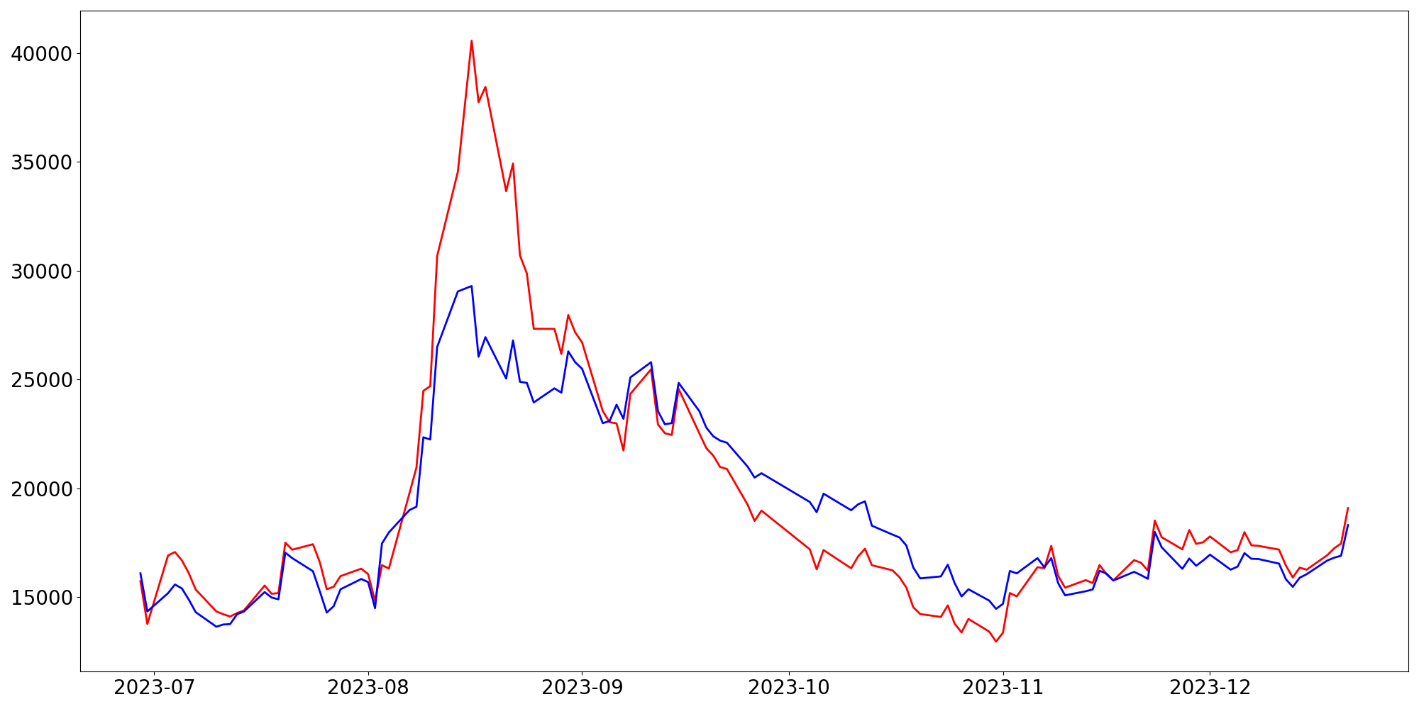 [ - : 실제값(종가) / - : 예측값(종가) ]