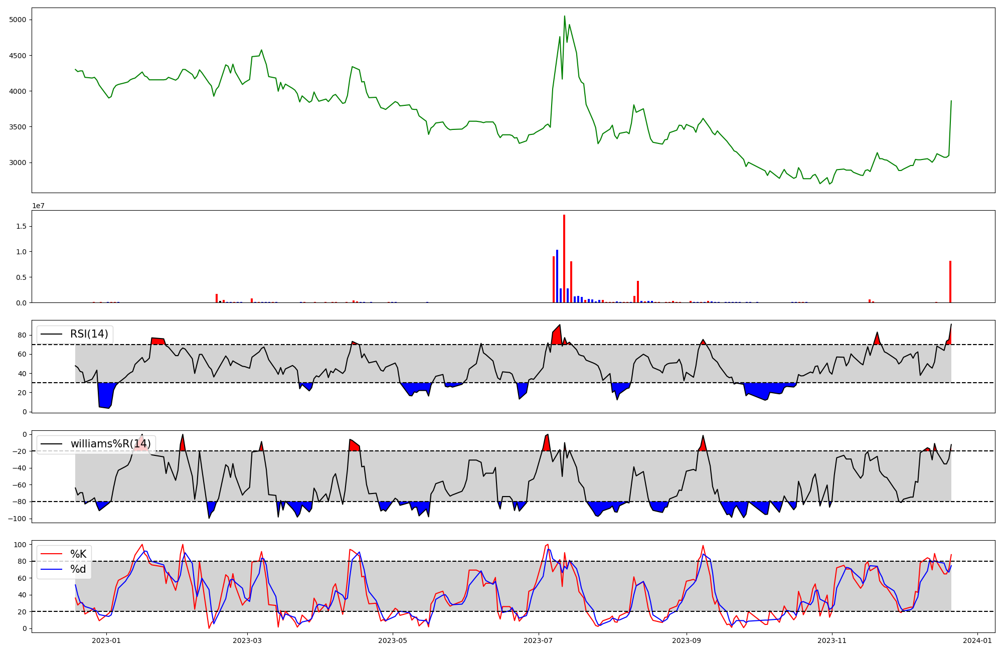 | RSI | Williams %R | stochastic(%K) | |