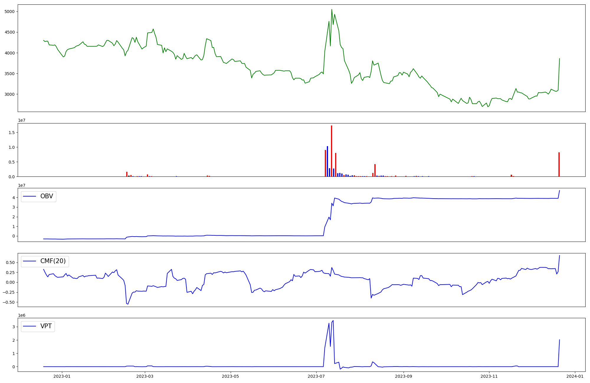 | OBV | CMF | VPT | |