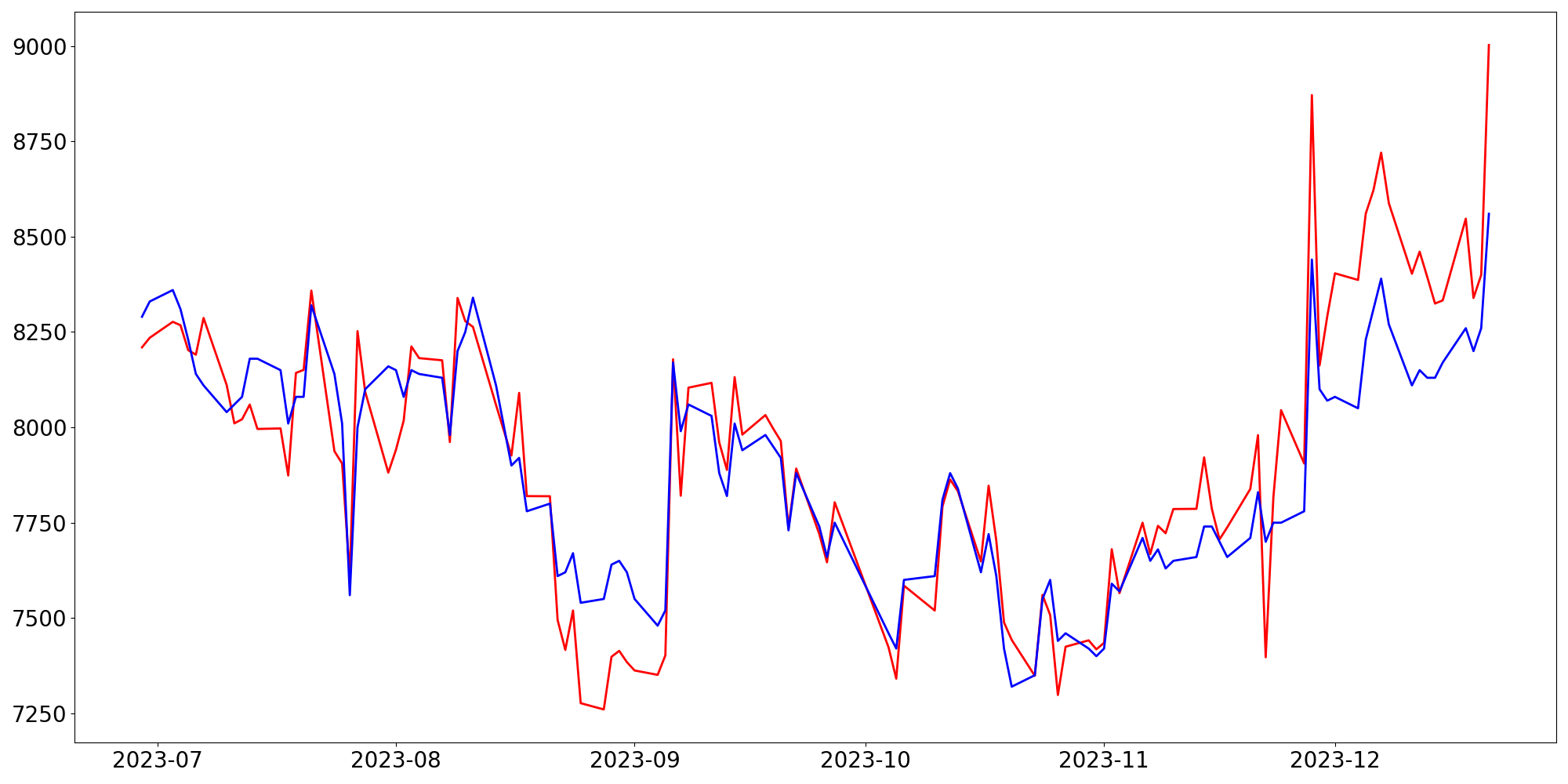 [ - : 실제값(종가) / - : 예측값(종가) ]