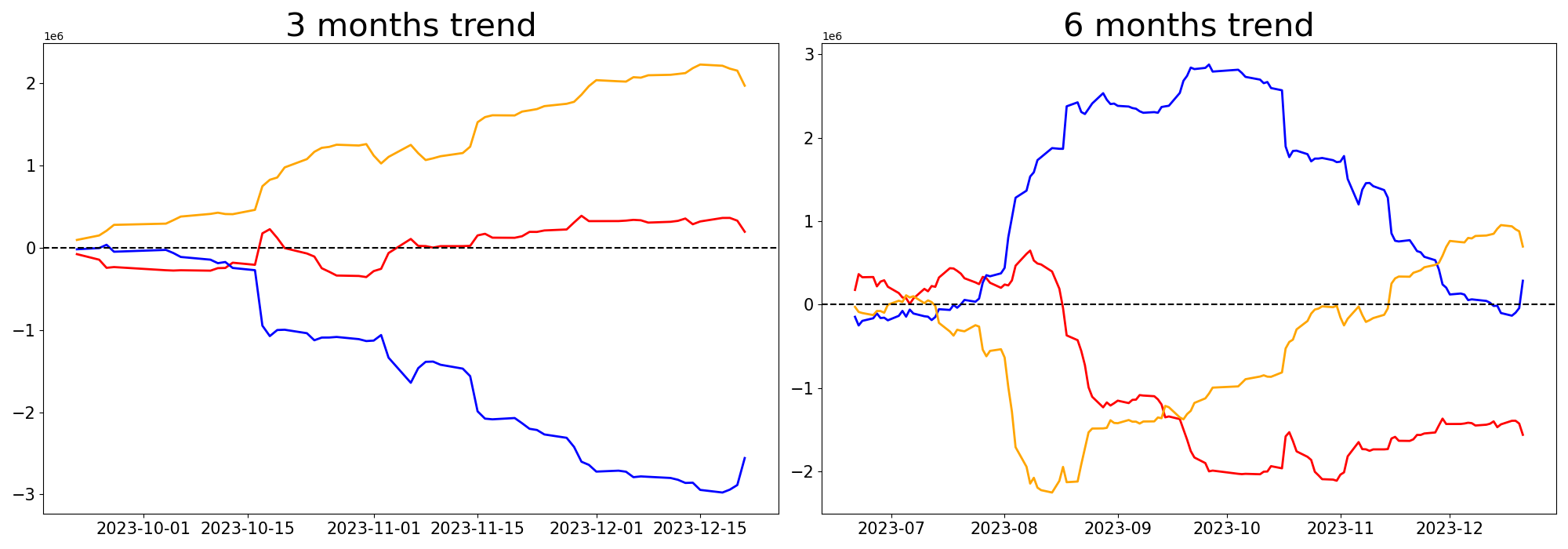 기관, 개인, 외국인으로 분류하여 투자주체별 일정기간동안의 누적적 매수/매도 현황을 분석한 내용입니다. 특정일의 투자자별 매매동향을 통해서 단기간의 시장충격여부를 판단할 수 있으며 장기적인 매매동향을 통해서 해당 종목의 장기 모멘텀을 판단해 볼 수 있습니다.