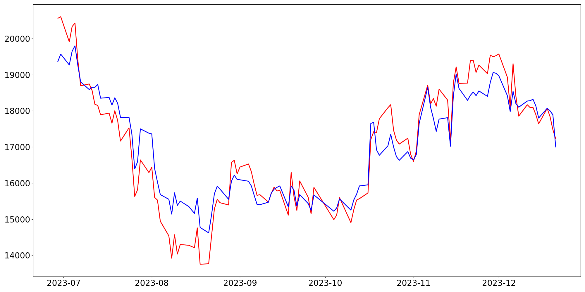[ - : 실제값(종가) / - : 예측값(종가) ]