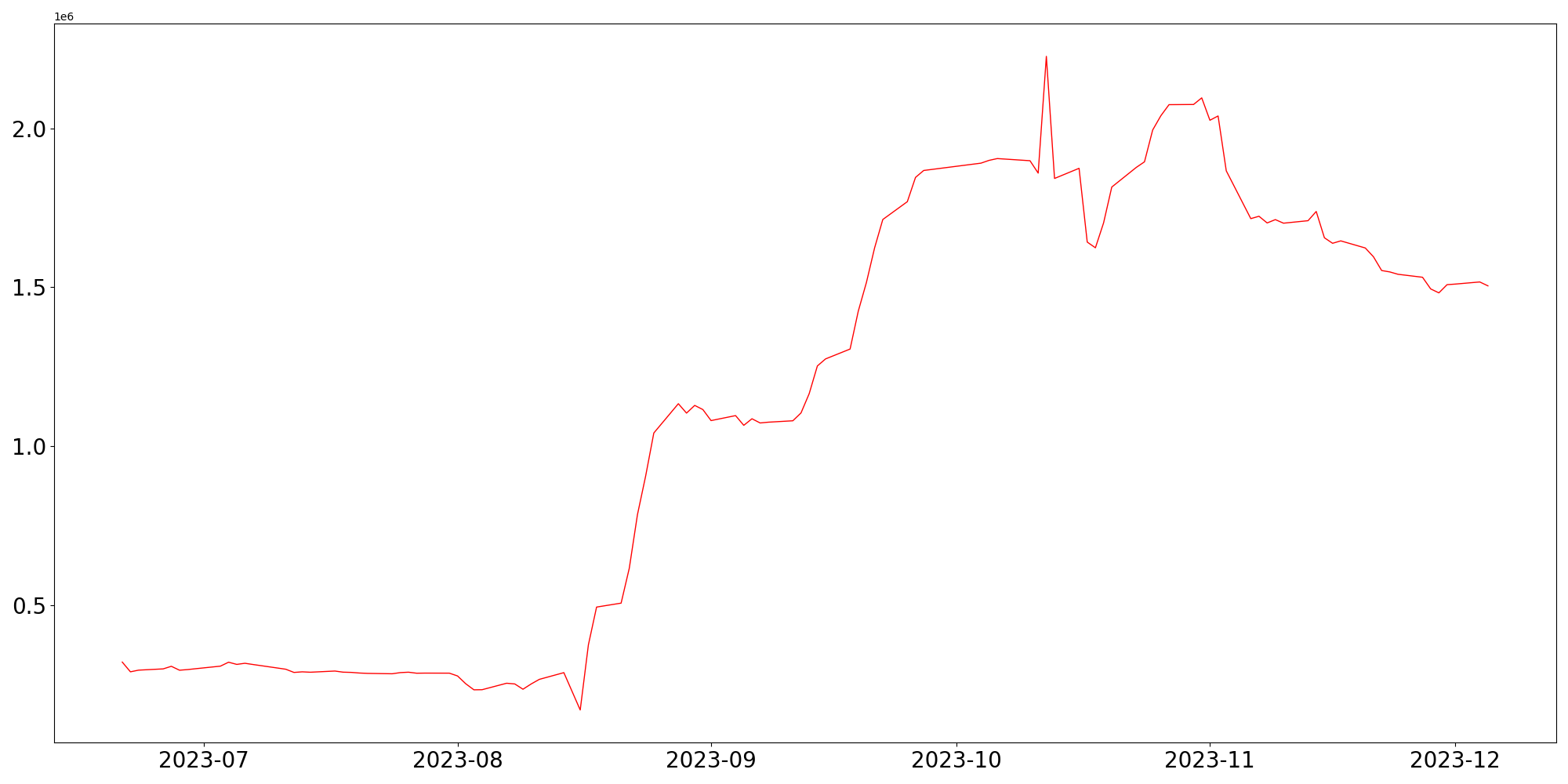 일별 공매도 거래량 추이를 그래프로 나타낸 것으로 공매도 거래량이 증가할 수록 단기적으로 가격 하락을 예측하는 시장참가자가 증거하는 것으로 판단해 볼 수 있습니다.