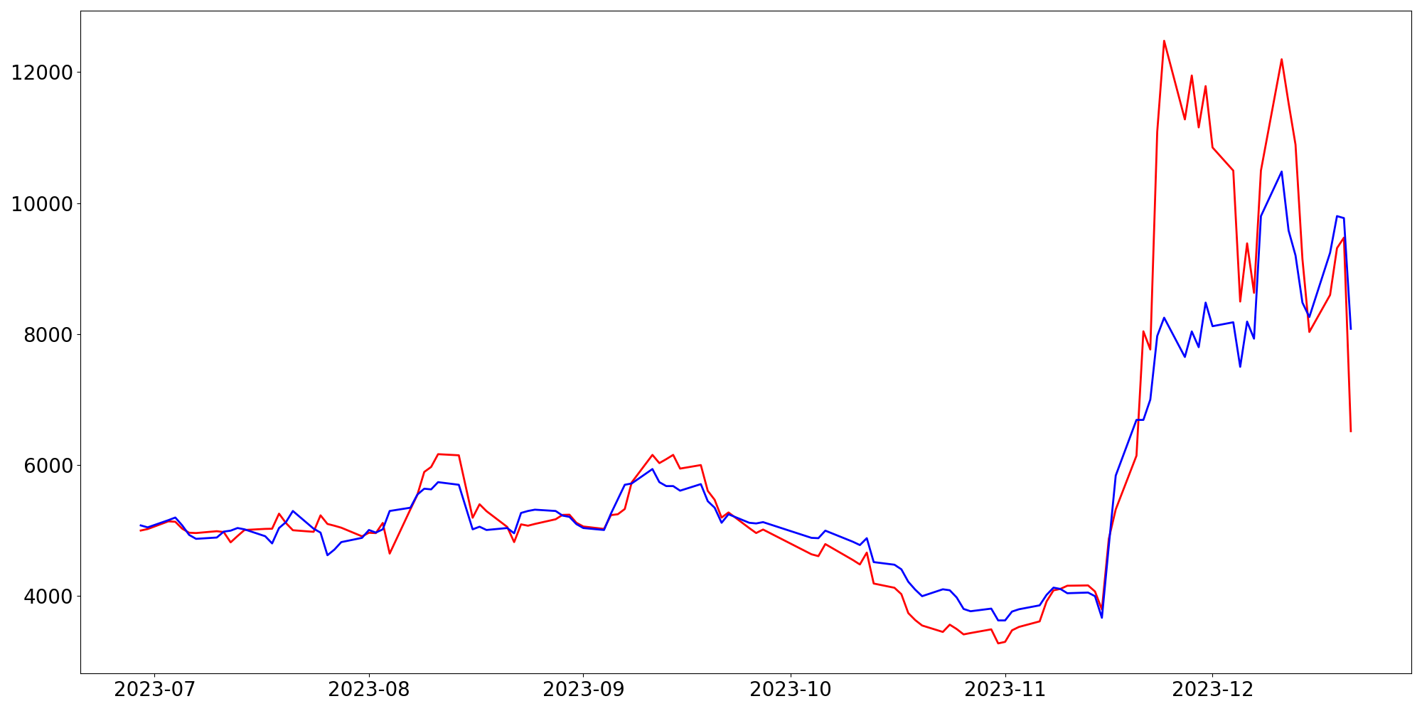 [ - : 실제값(종가) / - : 예측값(종가) ]