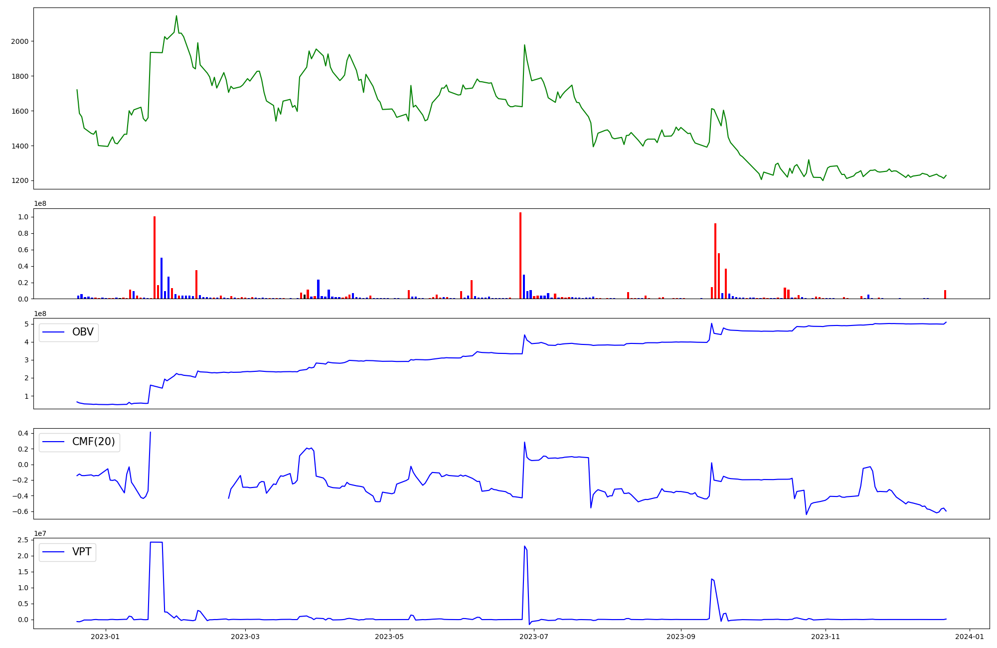 | OBV | CMF | VPT | |