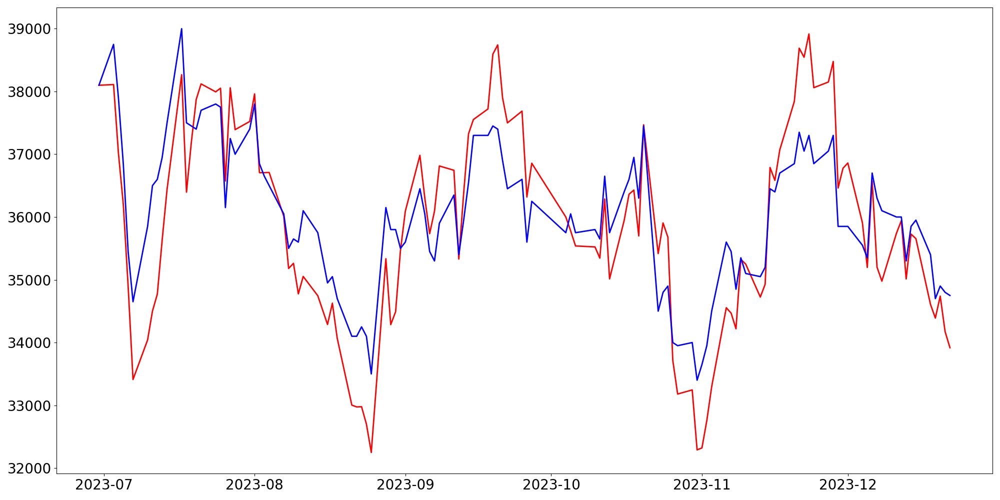 [ - : 실제값(종가) / - : 예측값(종가) ]