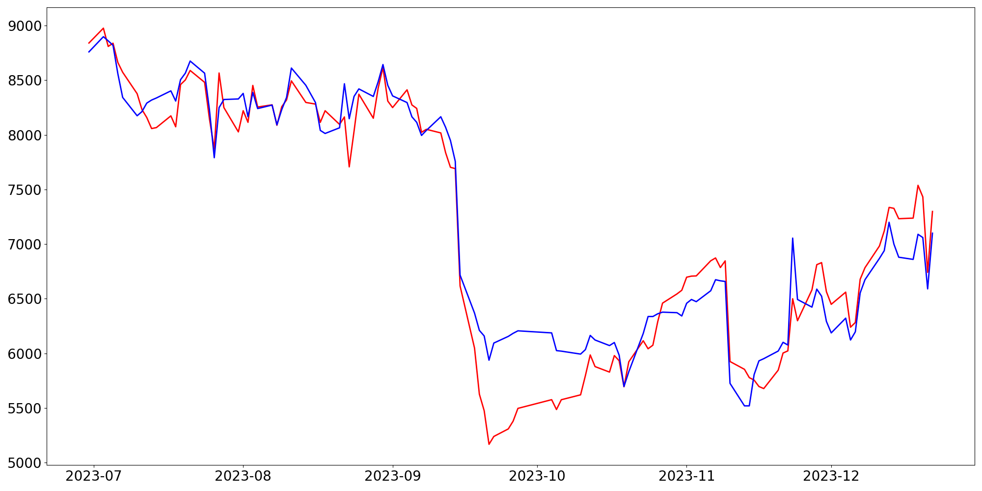 [ - : 실제값(종가) / - : 예측값(종가) ]