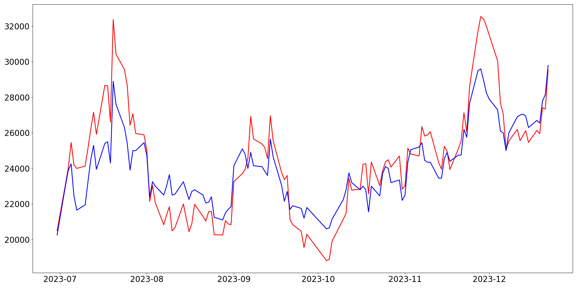 [ - : 실제값(종가) / - : 예측값(종가) ]