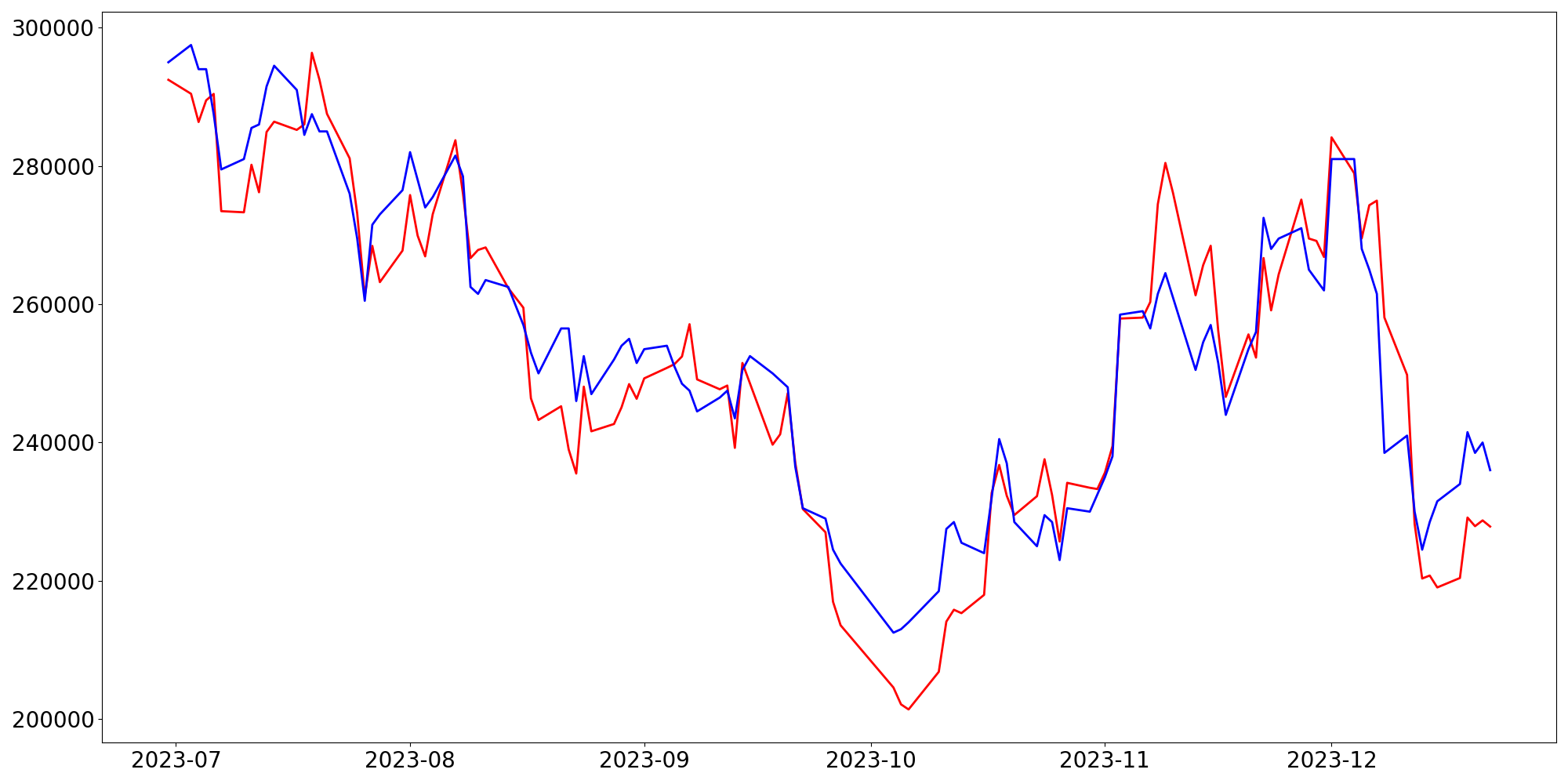 [ - : 실제값(종가) / - : 예측값(종가) ]