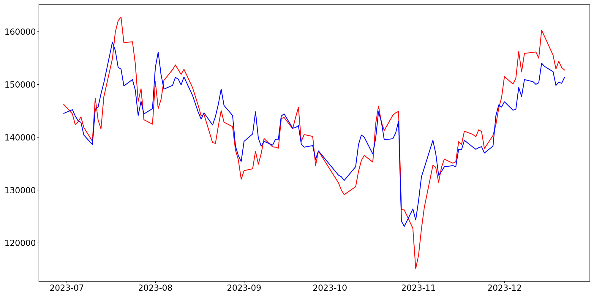 [ - : 실제값(종가) / - : 예측값(종가) ]