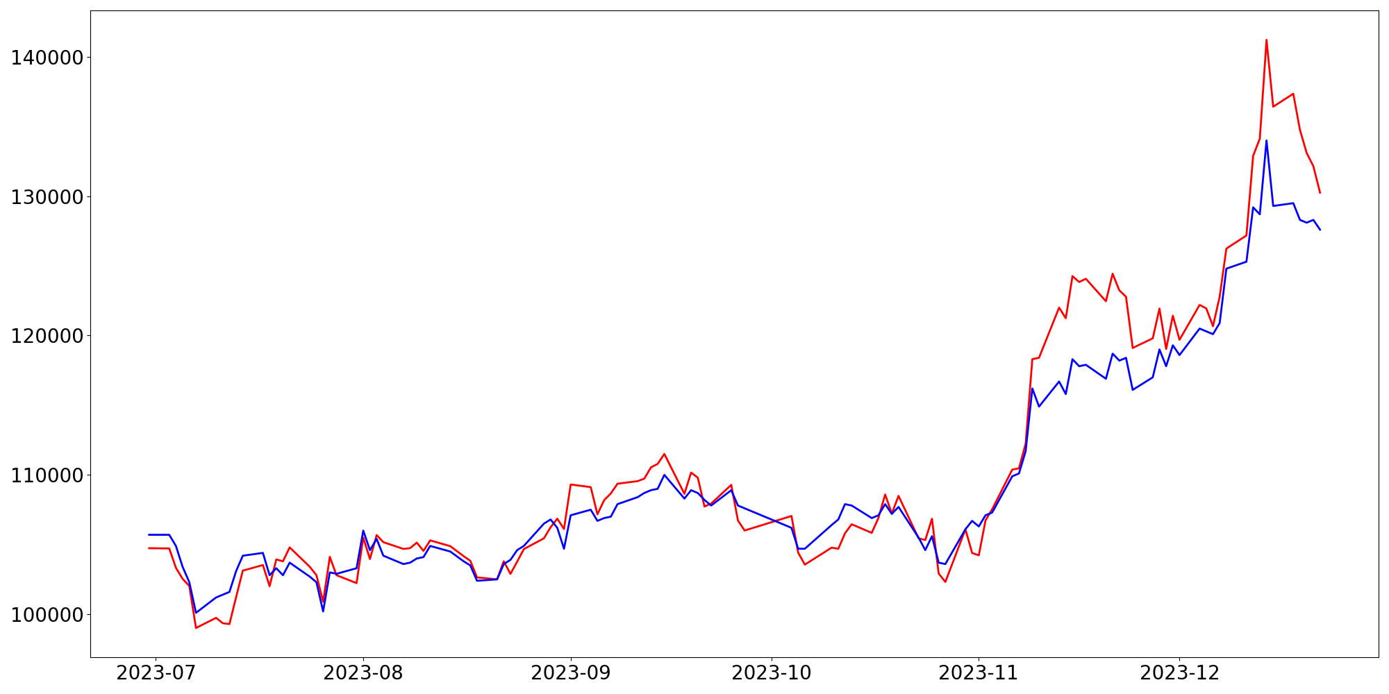 [ - : 실제값(종가) / - : 예측값(종가) ]