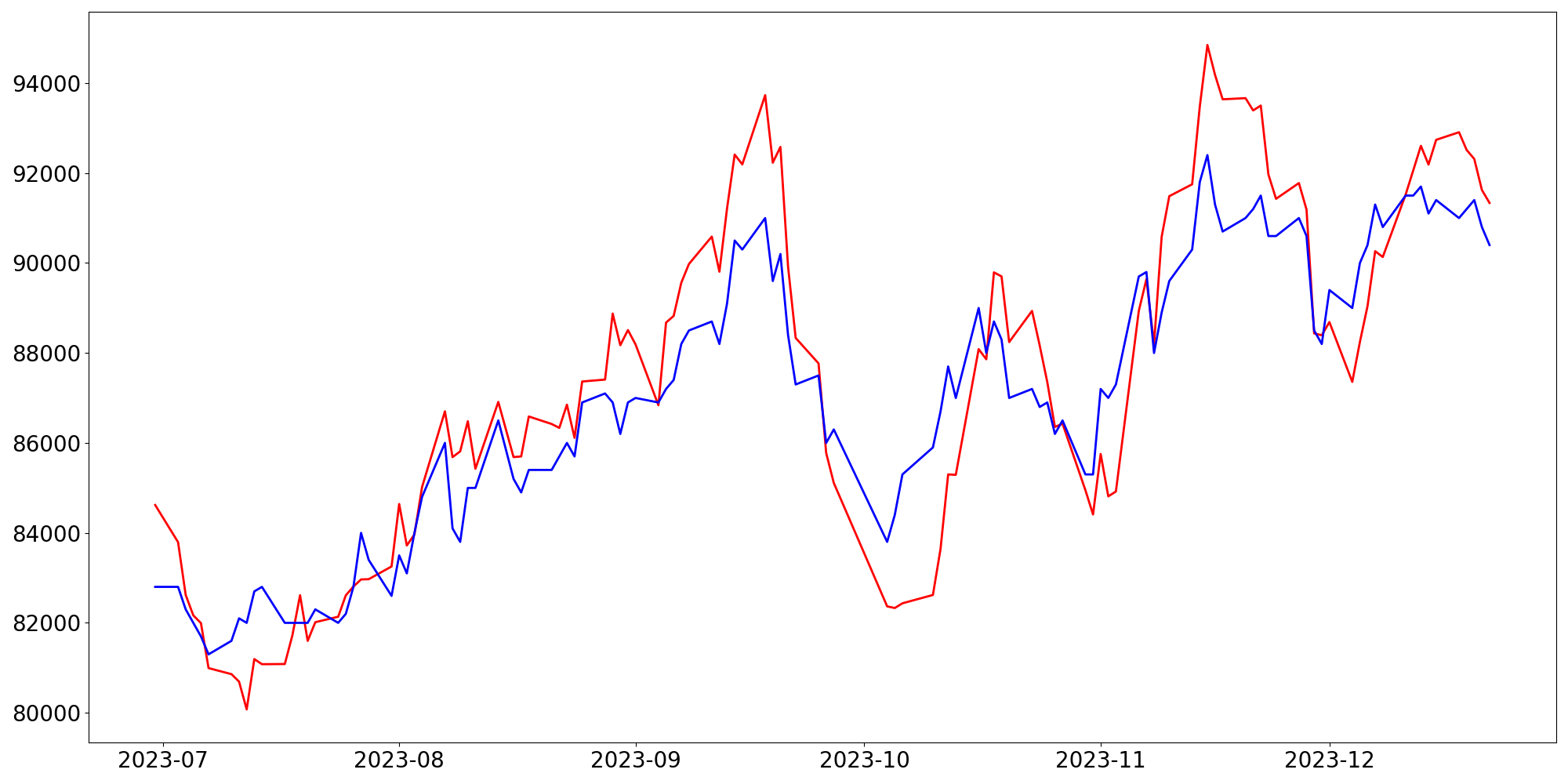 [ - : 실제값(종가) / - : 예측값(종가) ]