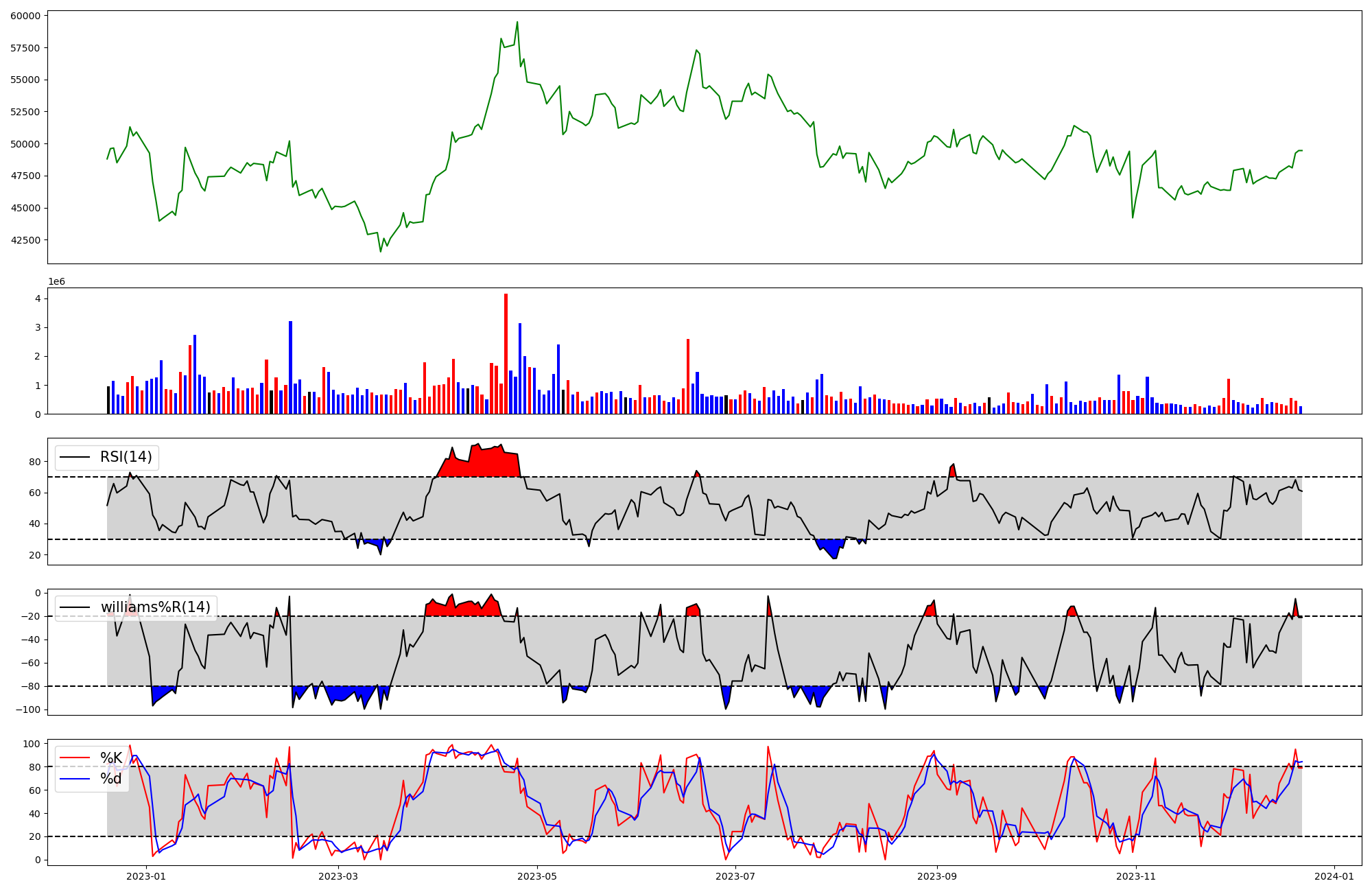RSI Williams %R stochastic(%K)