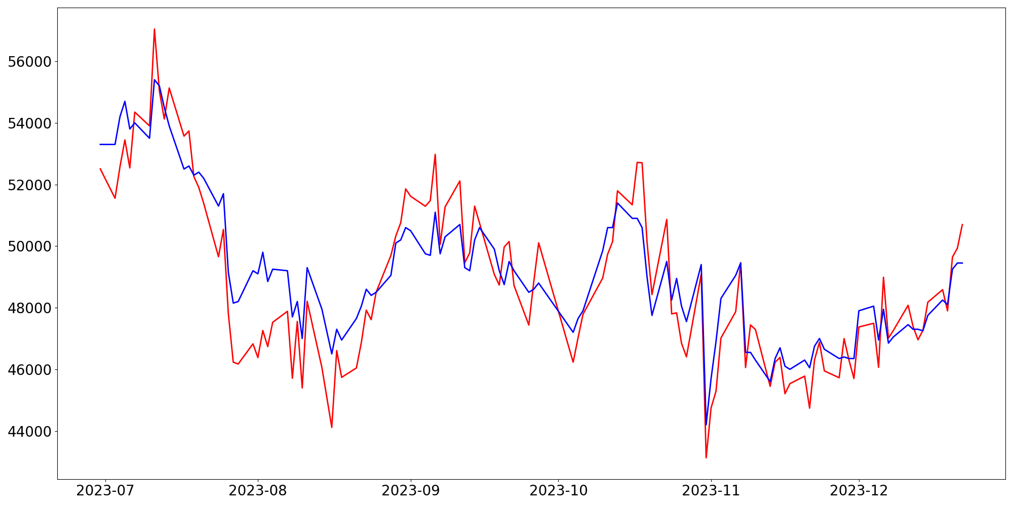 [ - : 실제값(종가) / - : 예측값(종가) ]