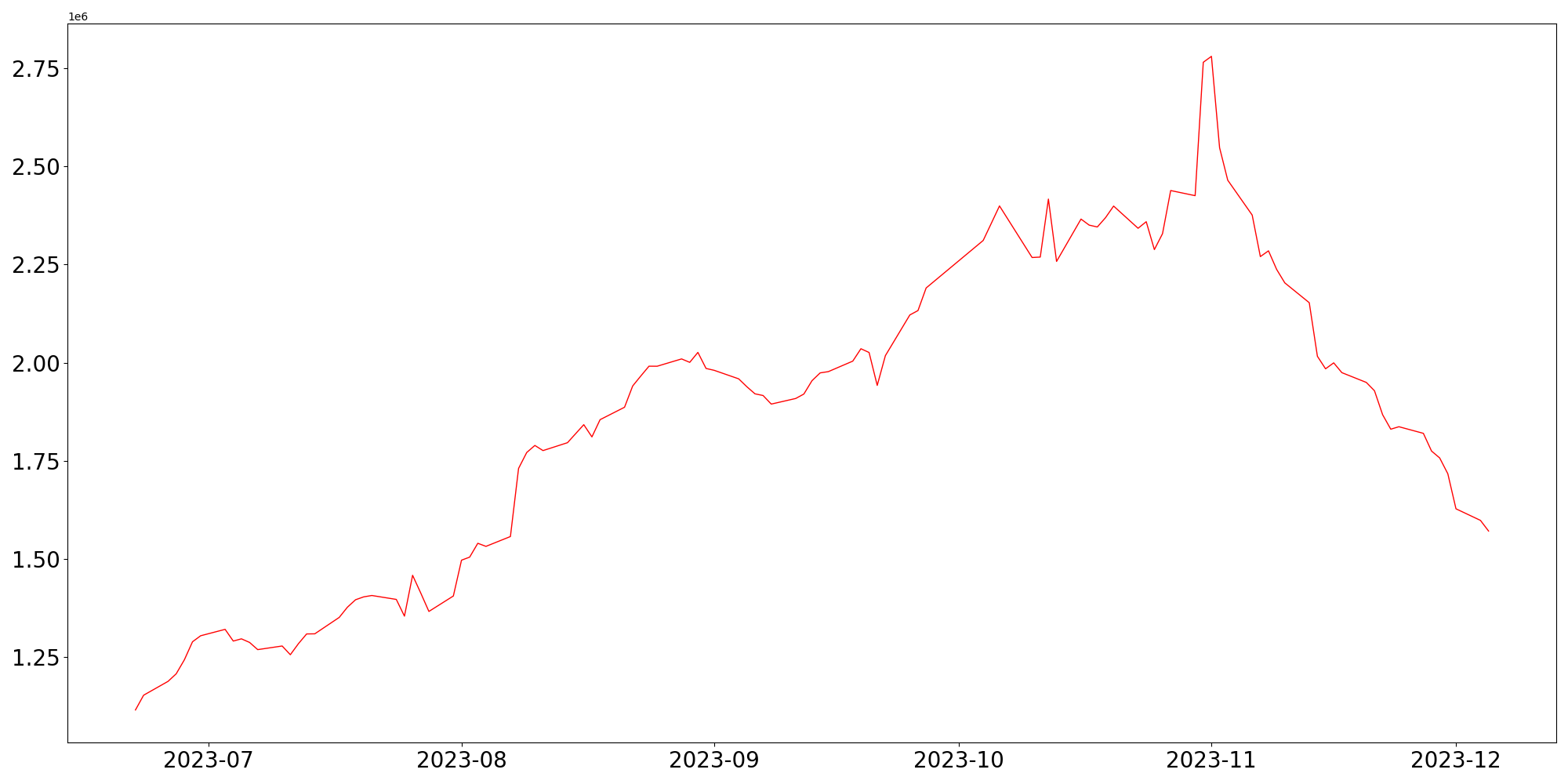 일별 공매도 거래량 추이를 그래프로 나타낸 것으로 공매도 거래량이 증가할 수록 단기적으로 가격 하락을 예측하는 시장참가자가 증거하는 것으로 판단해 볼 수 있습니다.