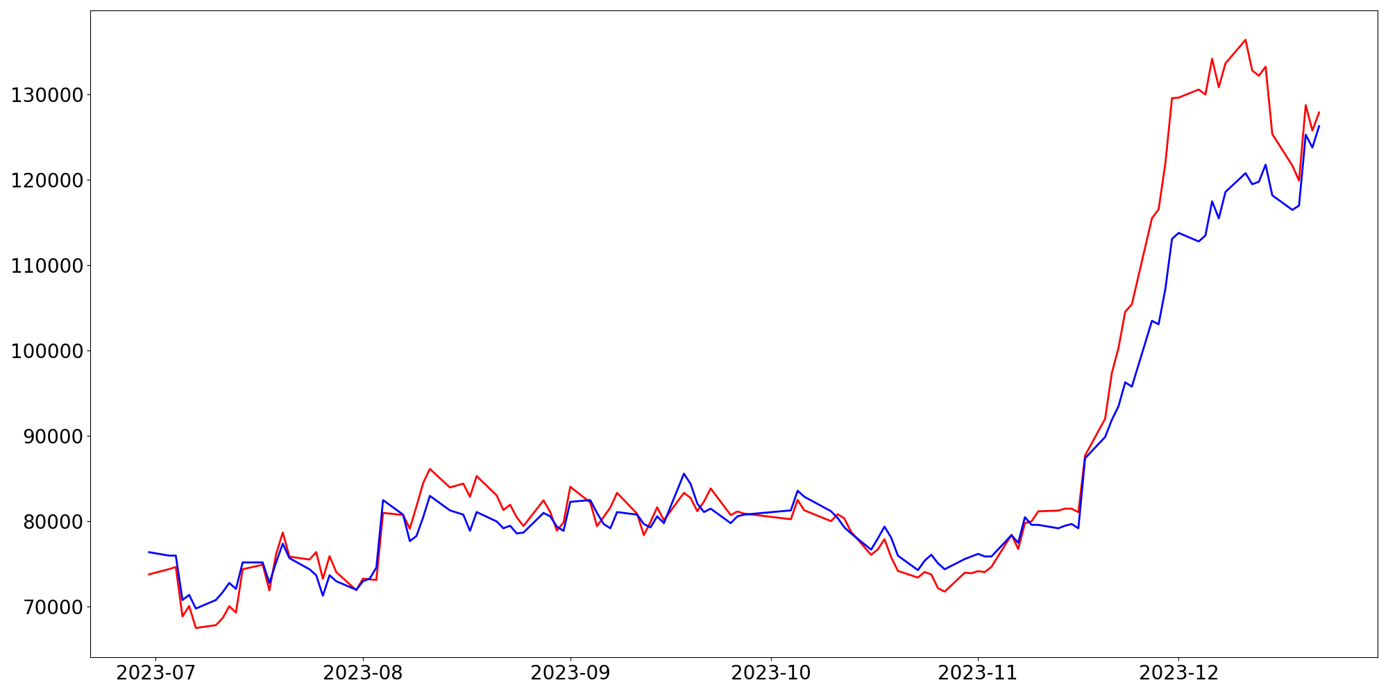 [ - : 실제값(종가) / - : 예측값(종가) ]