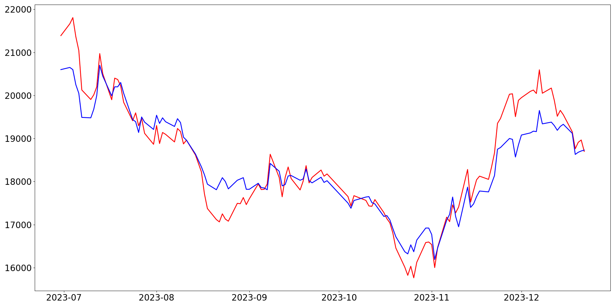 [ - : 실제값(종가) / - : 예측값(종가) ]