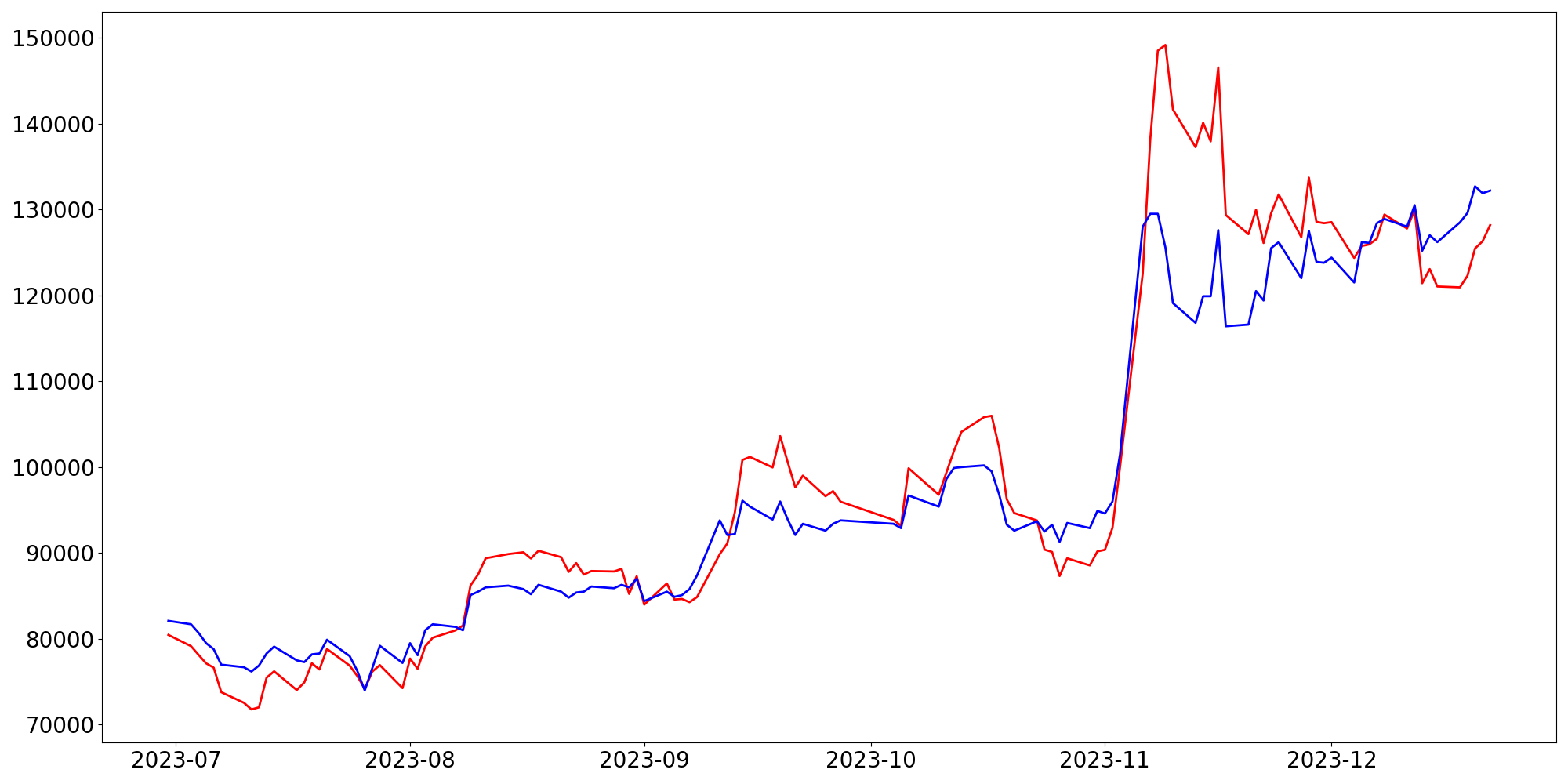 [ - : 실제값(종가) / - : 예측값(종가) ]
