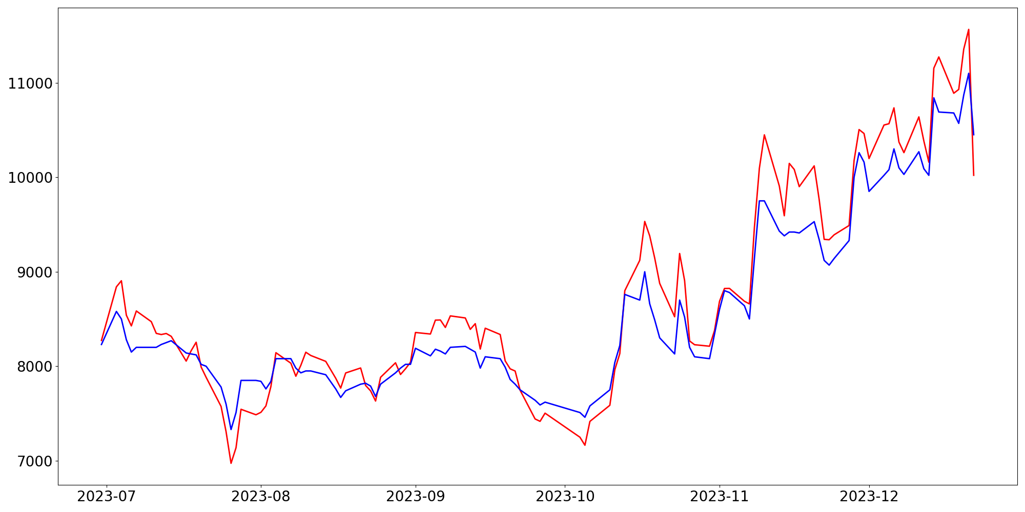 [ - : 실제값(종가) / - : 예측값(종가) ]