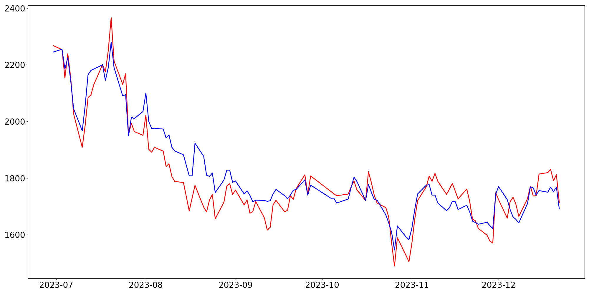 [ - : 실제값(종가) / - : 예측값(종가) ]