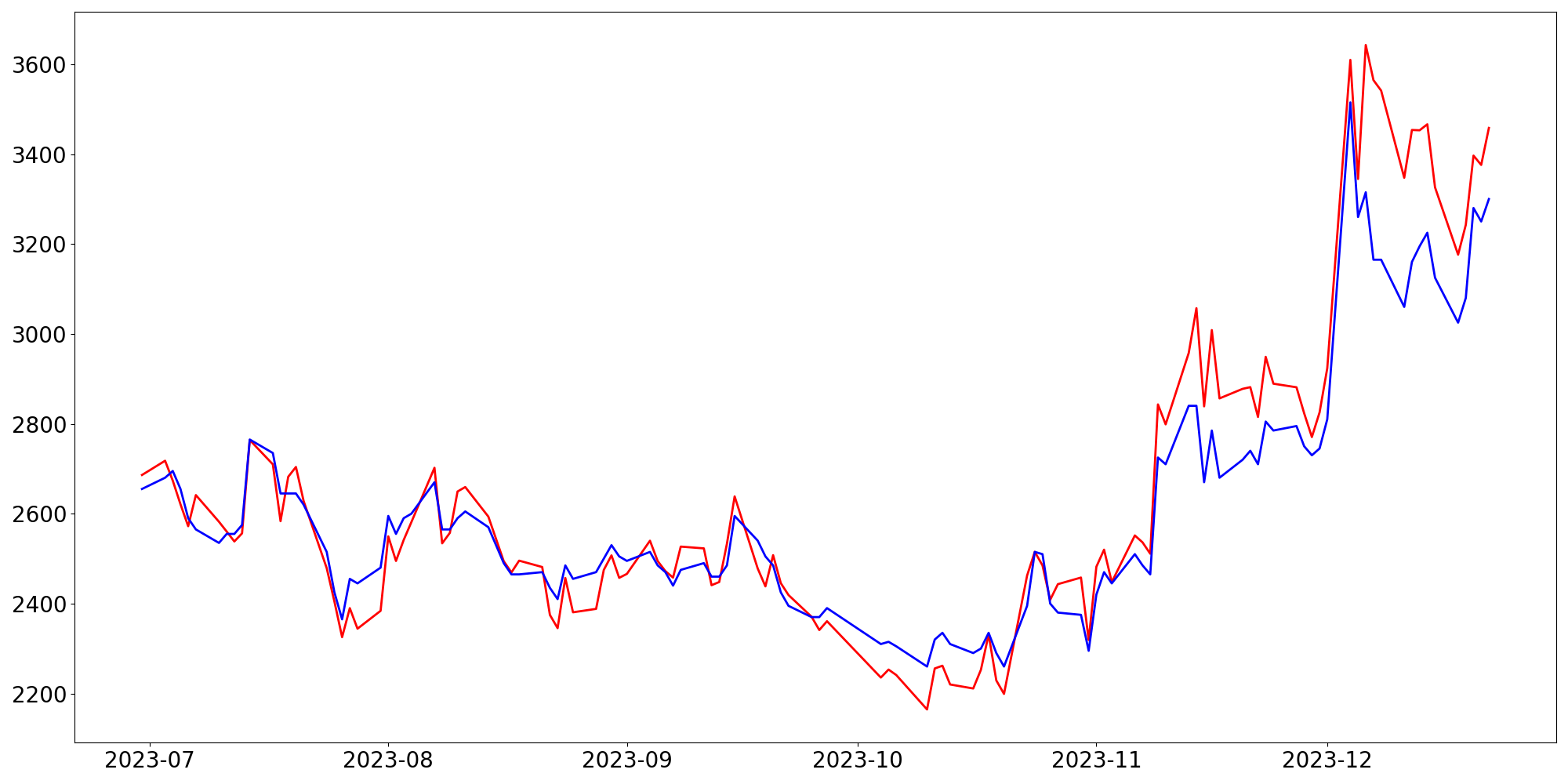 [ - : 실제값(종가) / - : 예측값(종가) ]