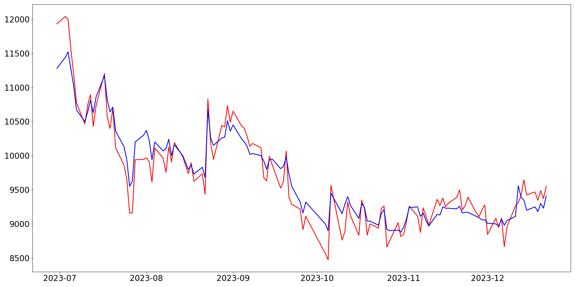 [ - : 실제값(종가) / - : 예측값(종가) ]