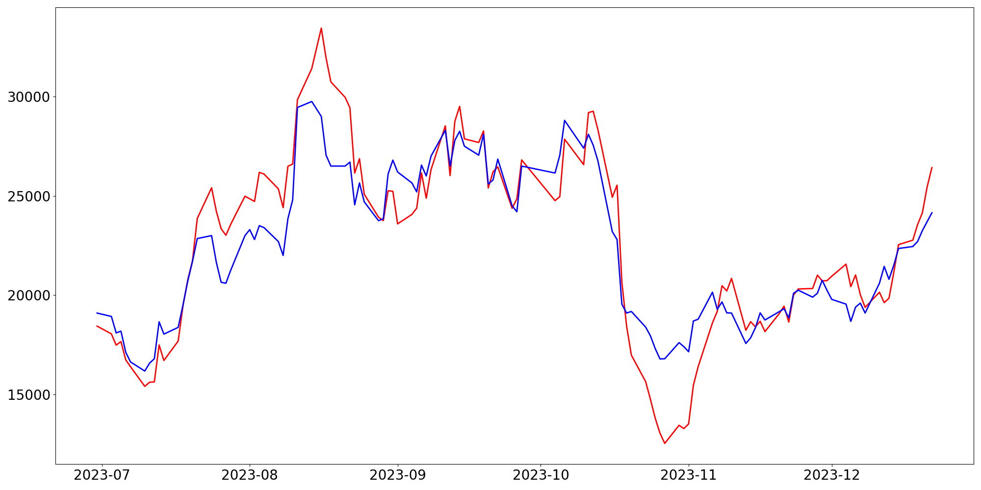 [ - : 실제값(종가) / - : 예측값(종가) ]