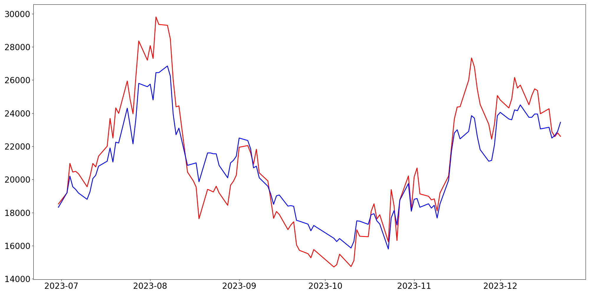 [ - : 실제값(종가) / - : 예측값(종가) ]
