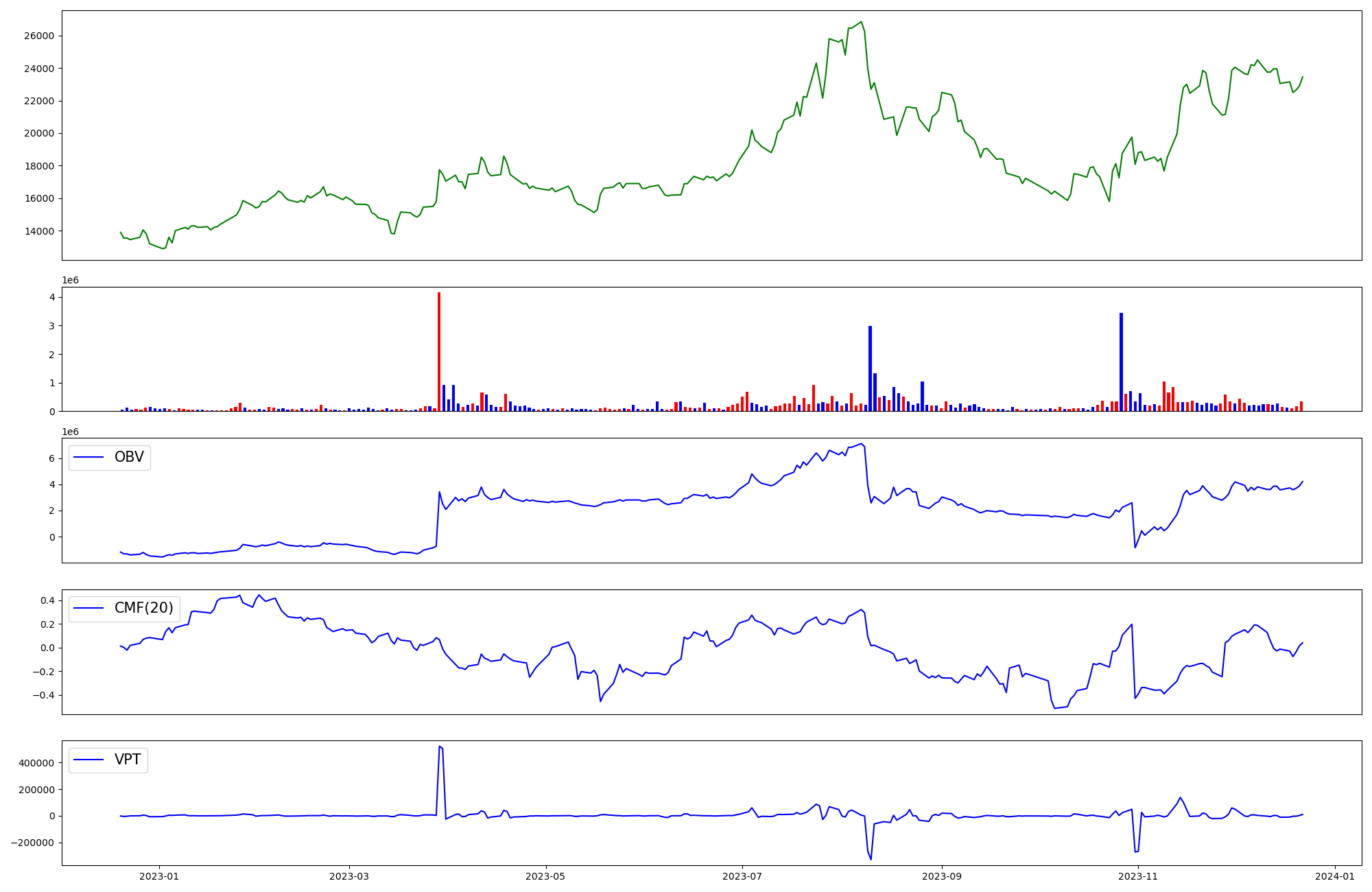 | OBV | CMF | VPT | |