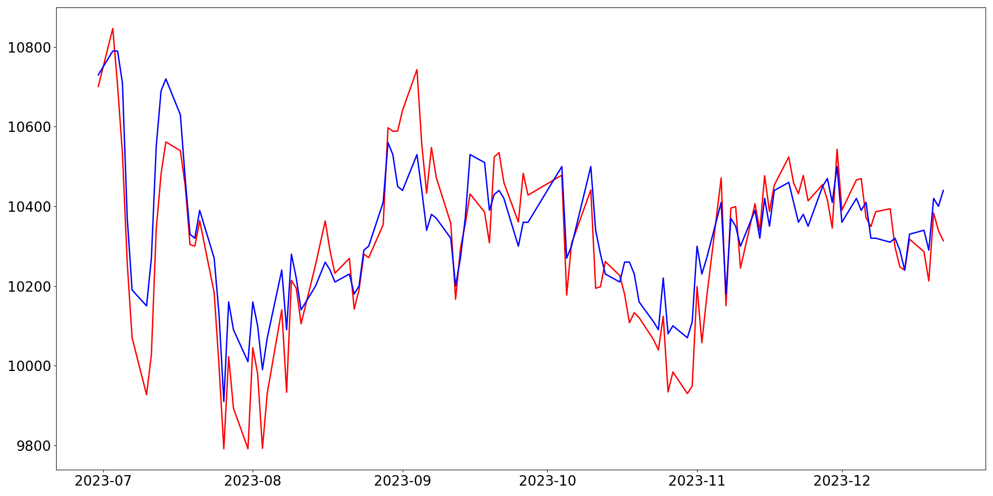 [ - : 실제값(종가) / - : 예측값(종가) ]