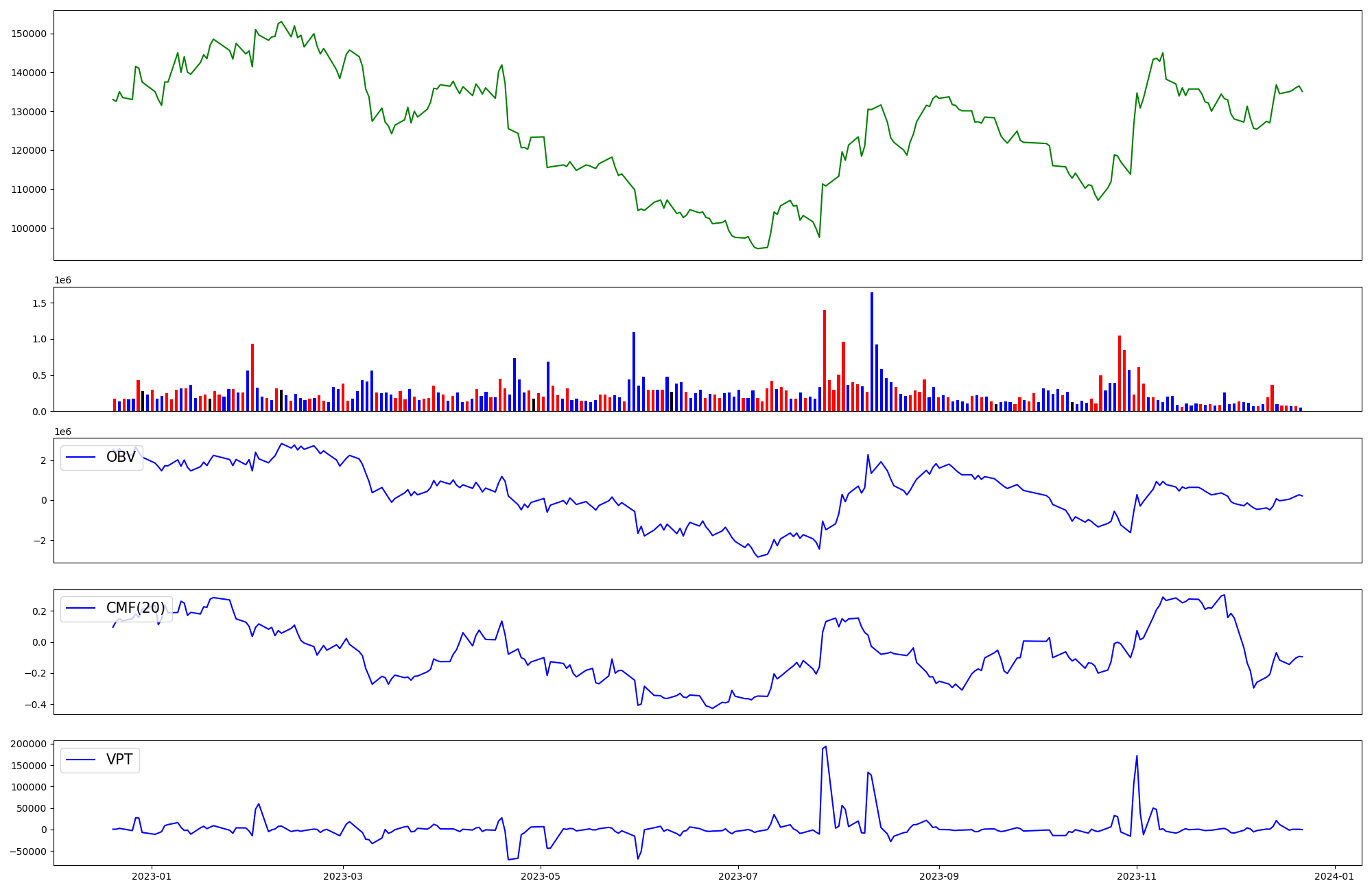 | OBV | CMF | VPT | |