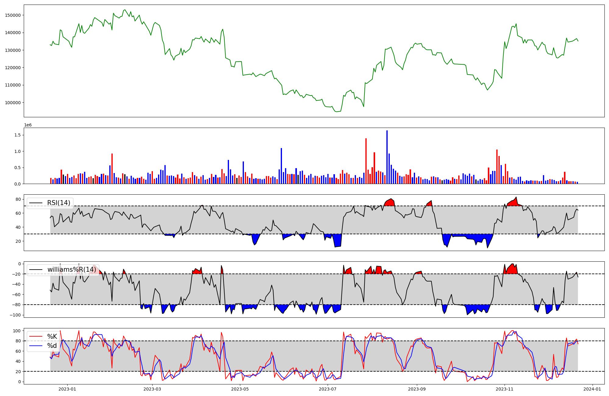 | RSI | Williams %R | stochastic(%K) | |