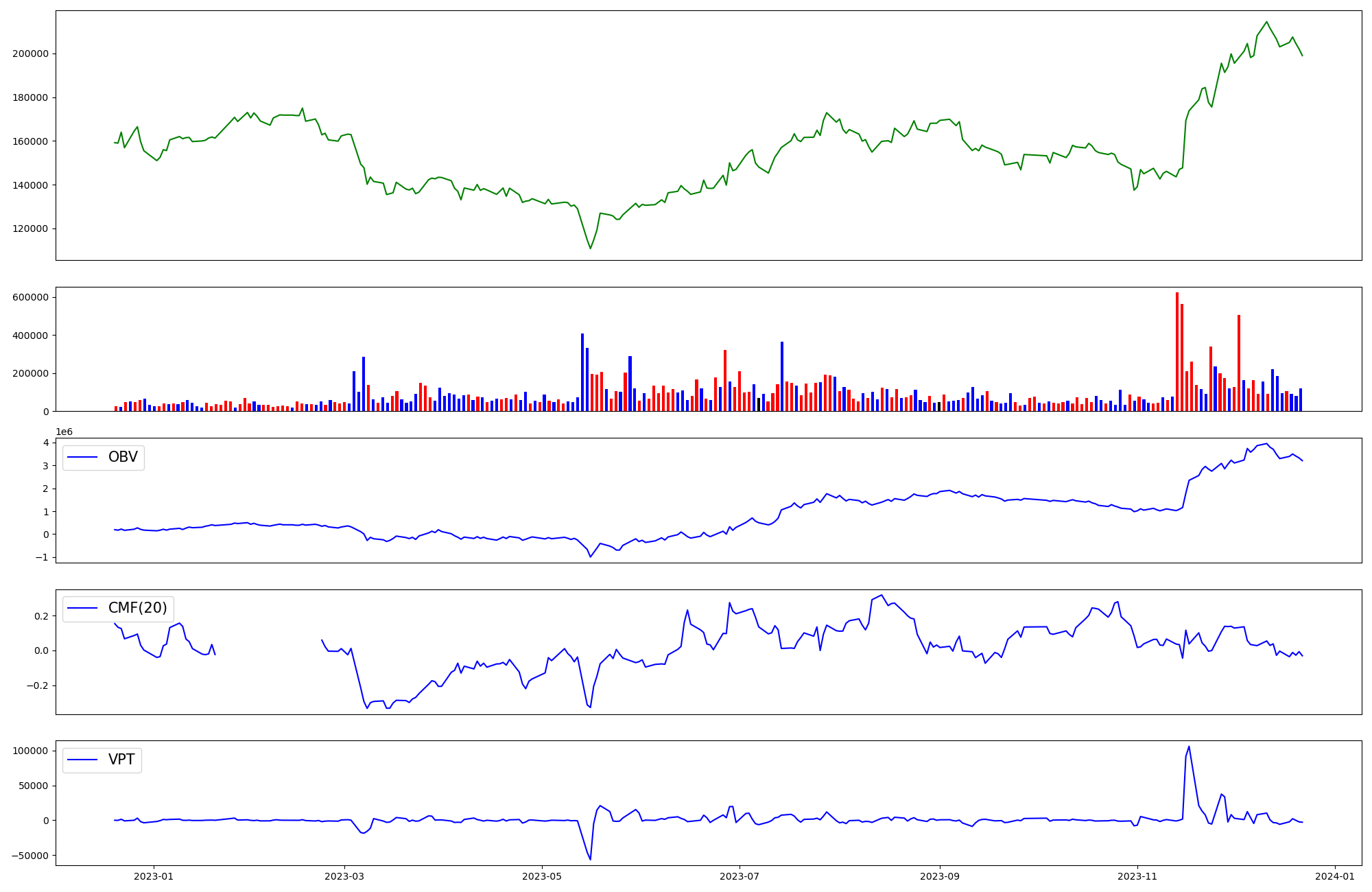 | OBV | CMF | VPT | |